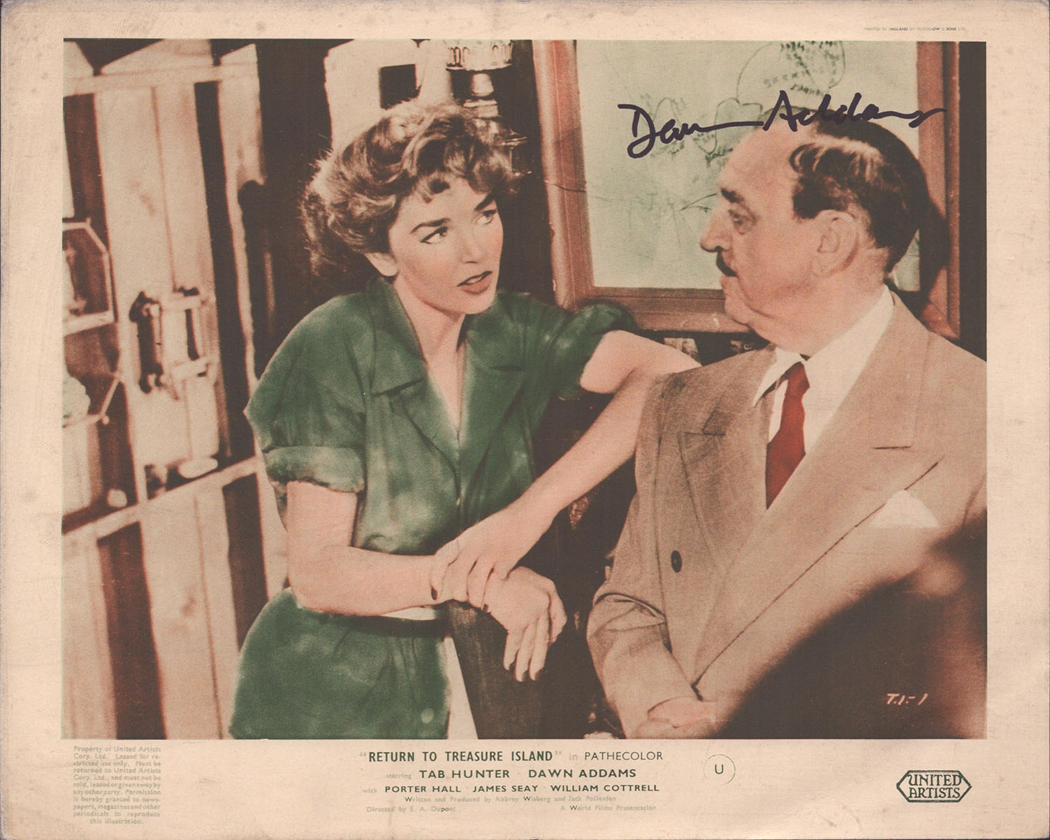 Autographed Cinema Lobby Card: Dawn Addams, for the film Return to Treaure Island (1954).