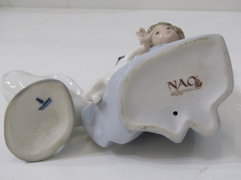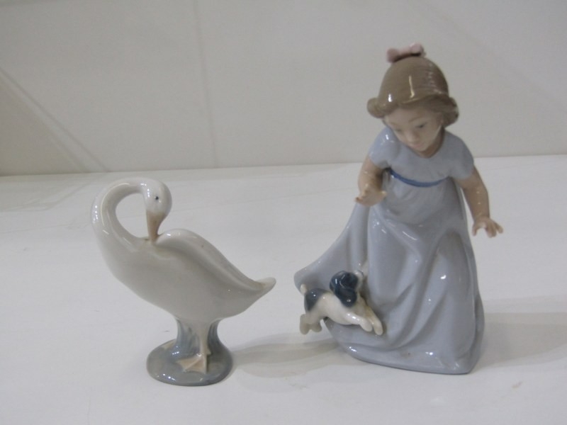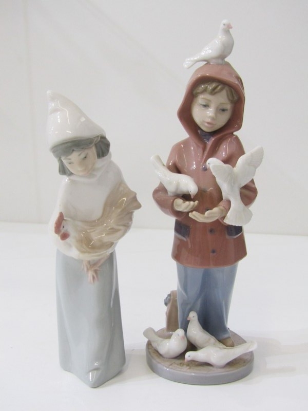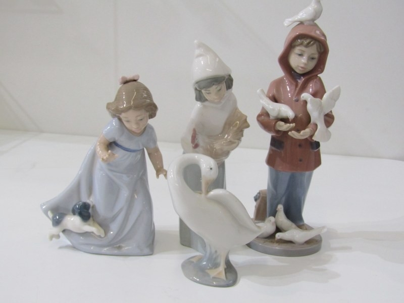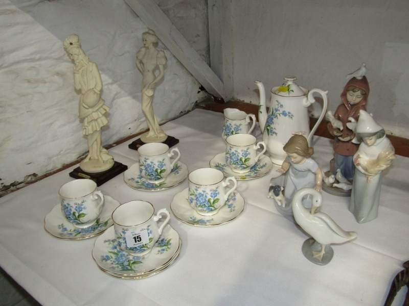 ROYAL ALBERT COFFEE WARE, selection of Royal Albert "Forget me not" coffee ware, also Lladro and Nao figures, including 215 "Boy feeding pigeons", also "Girl with hen", etc