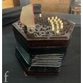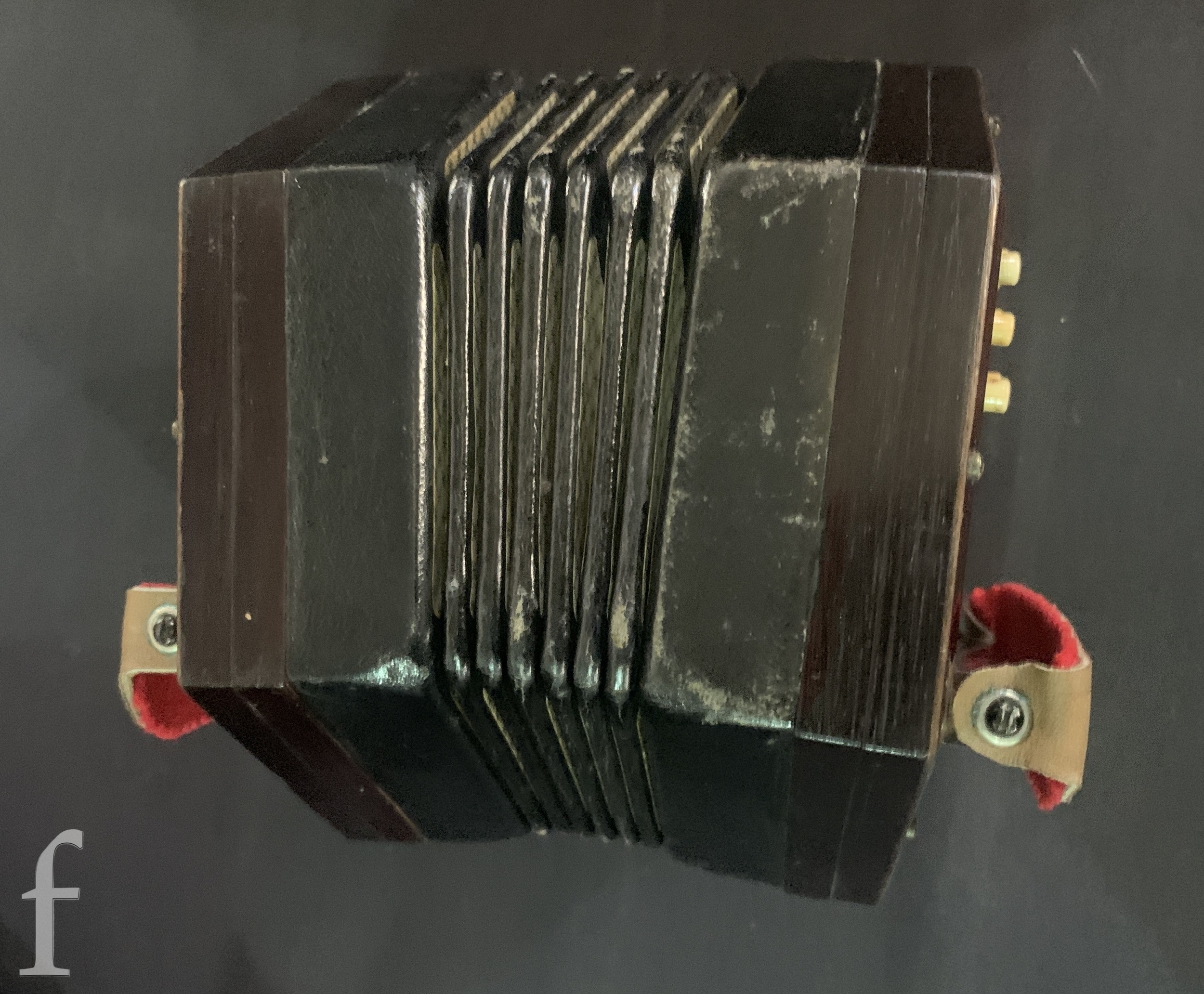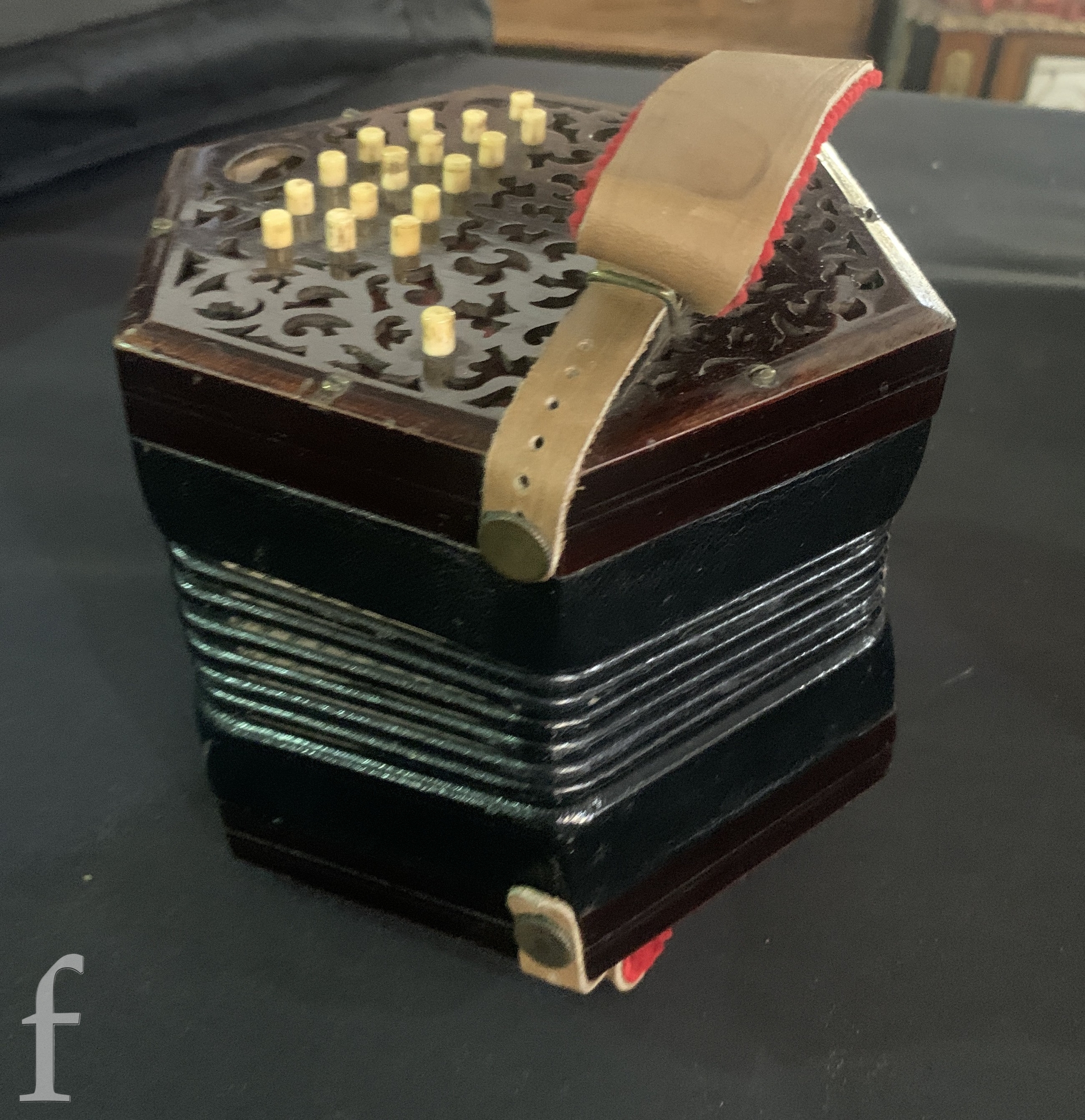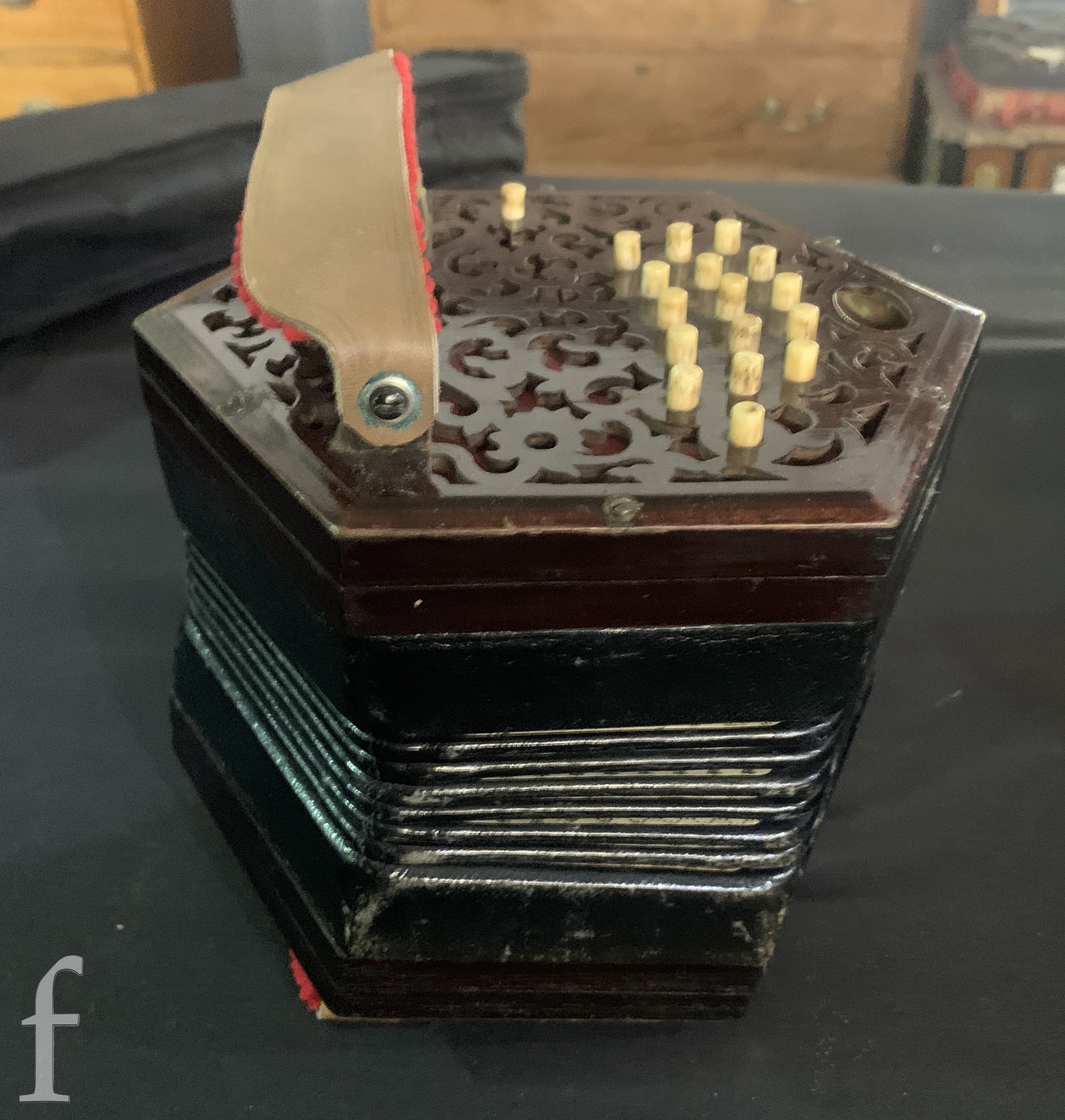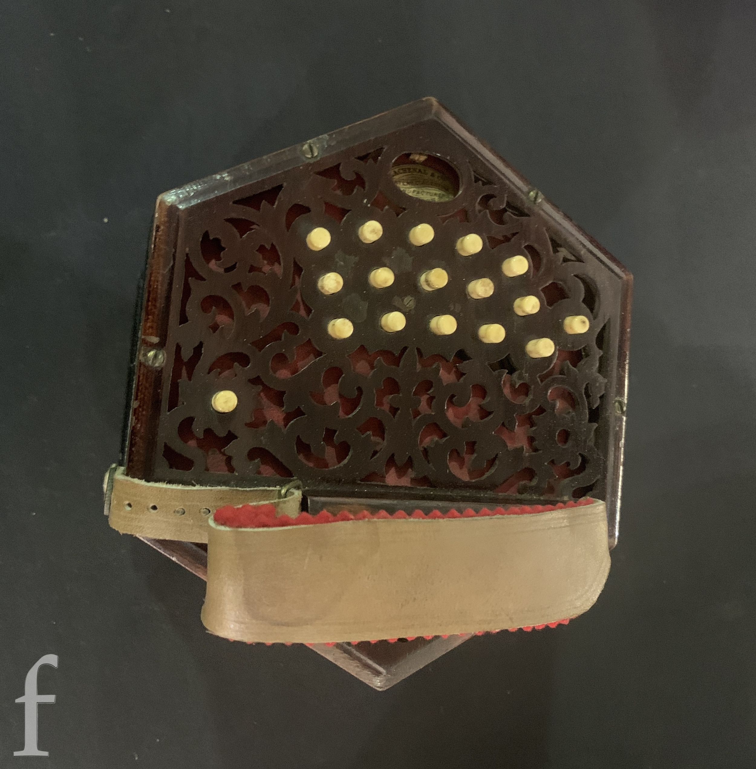 A 19th Century concertina by Lachnal & Co London No 142550, thirty three keys, in octagonal mahogany outer case.