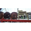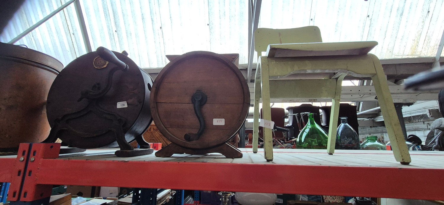 A vintage knife sharpener and polisher, together with an antique butter churner (no paddle), and a small wooden chair