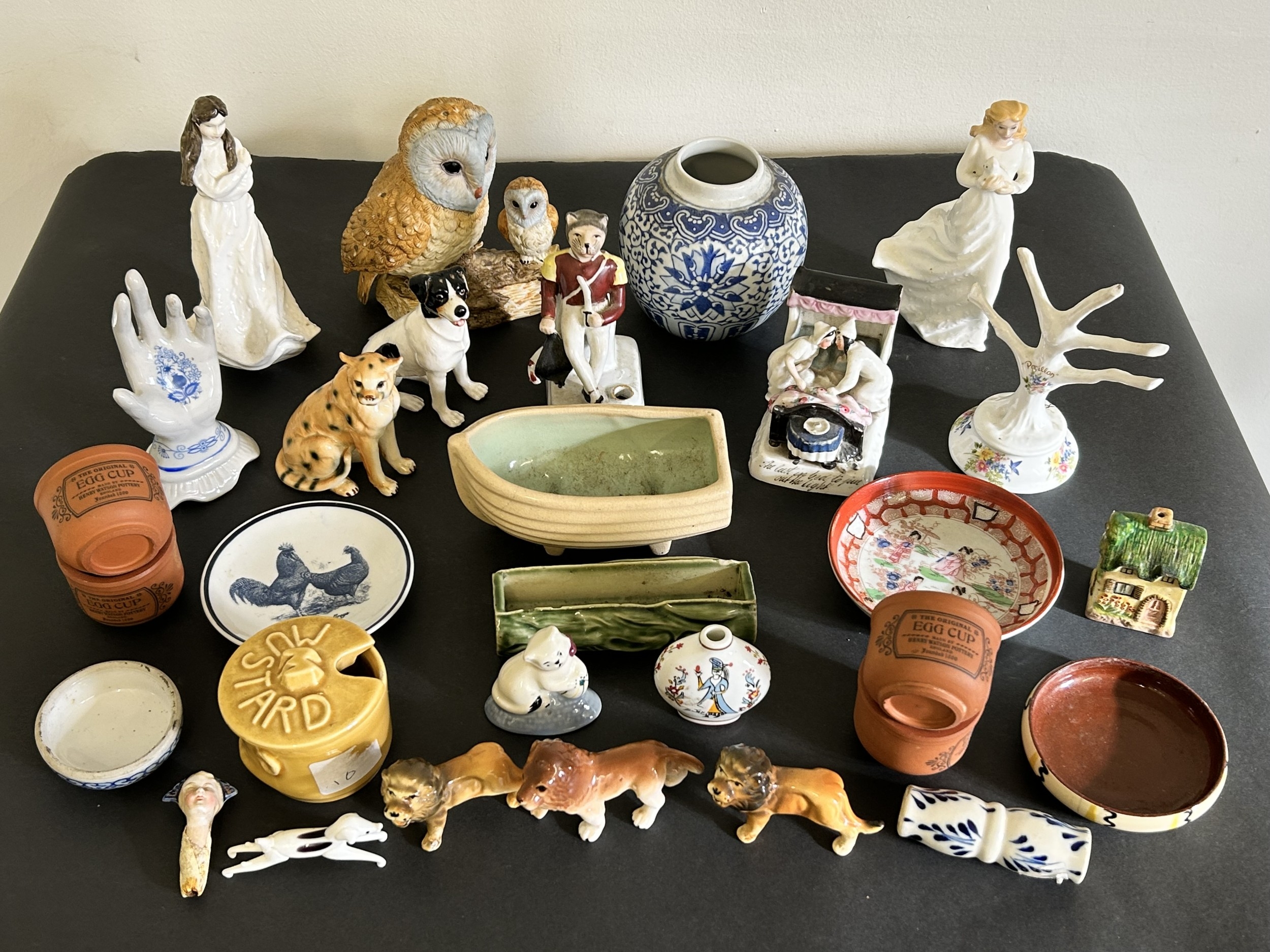 A selection of mixed ceramics including two Doulton figures, Victorian pen stand, Fairing, animal figures etc