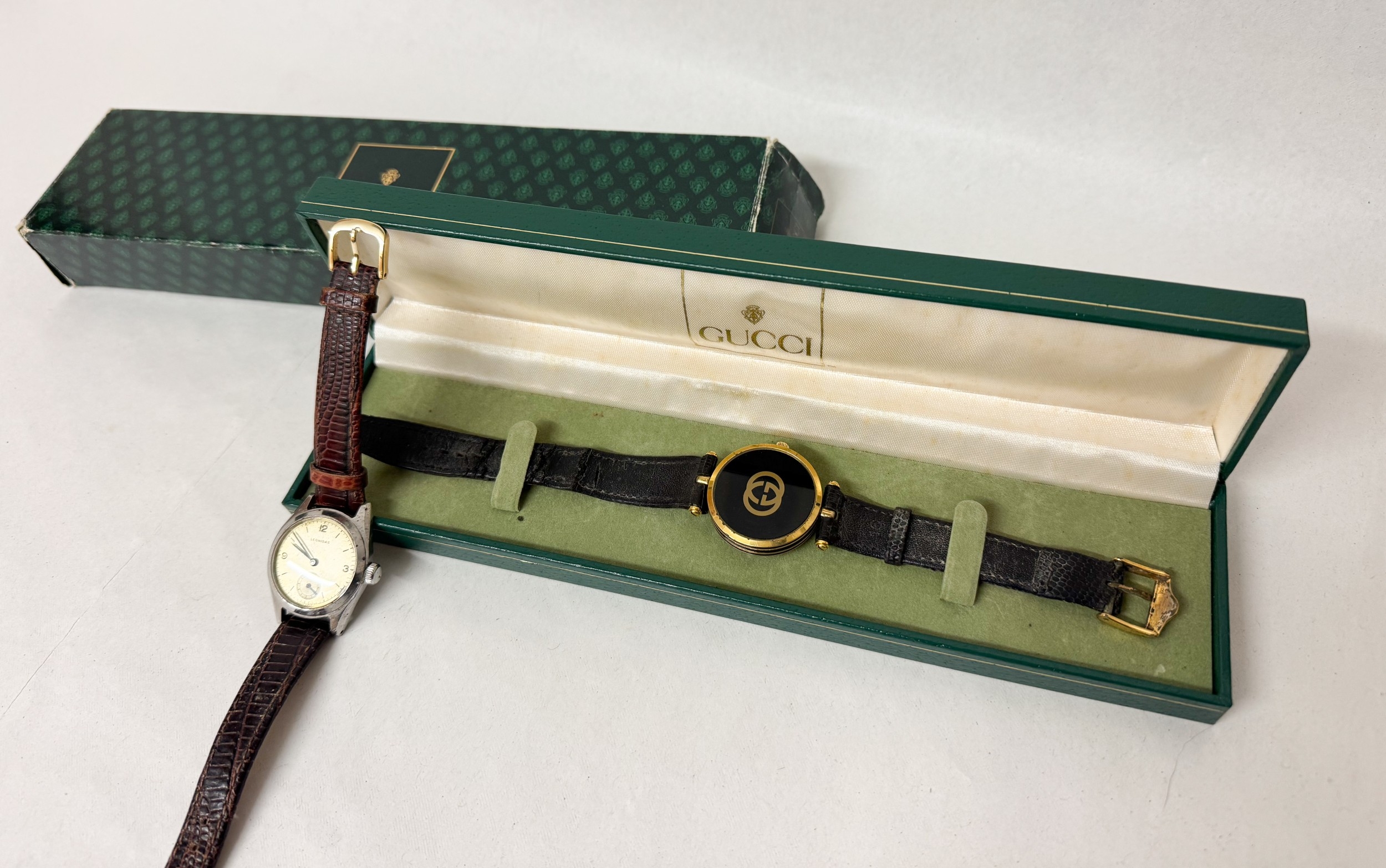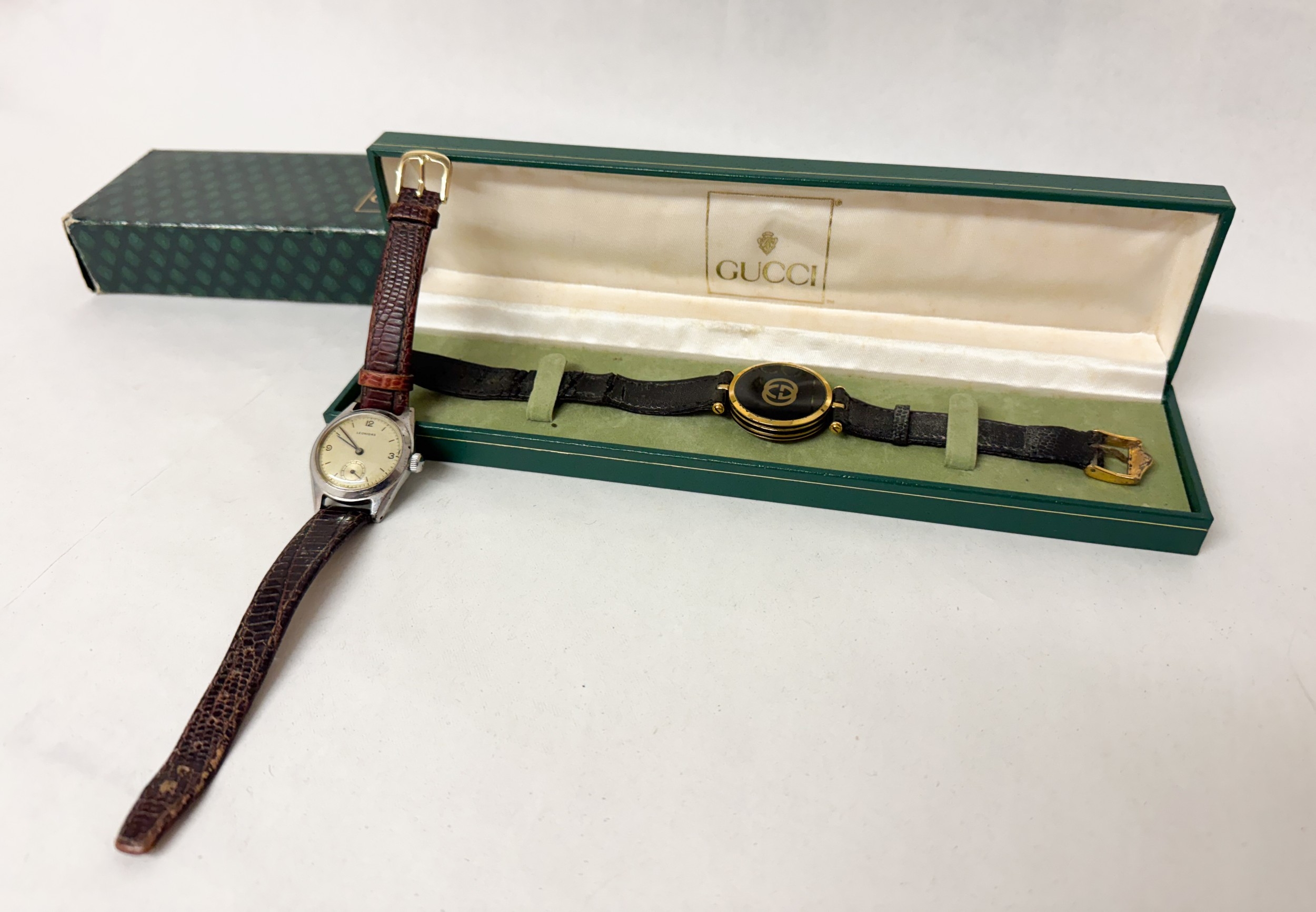 Vintage Leonidas watch with seconds dial, and a Gucci dress watch in original box.