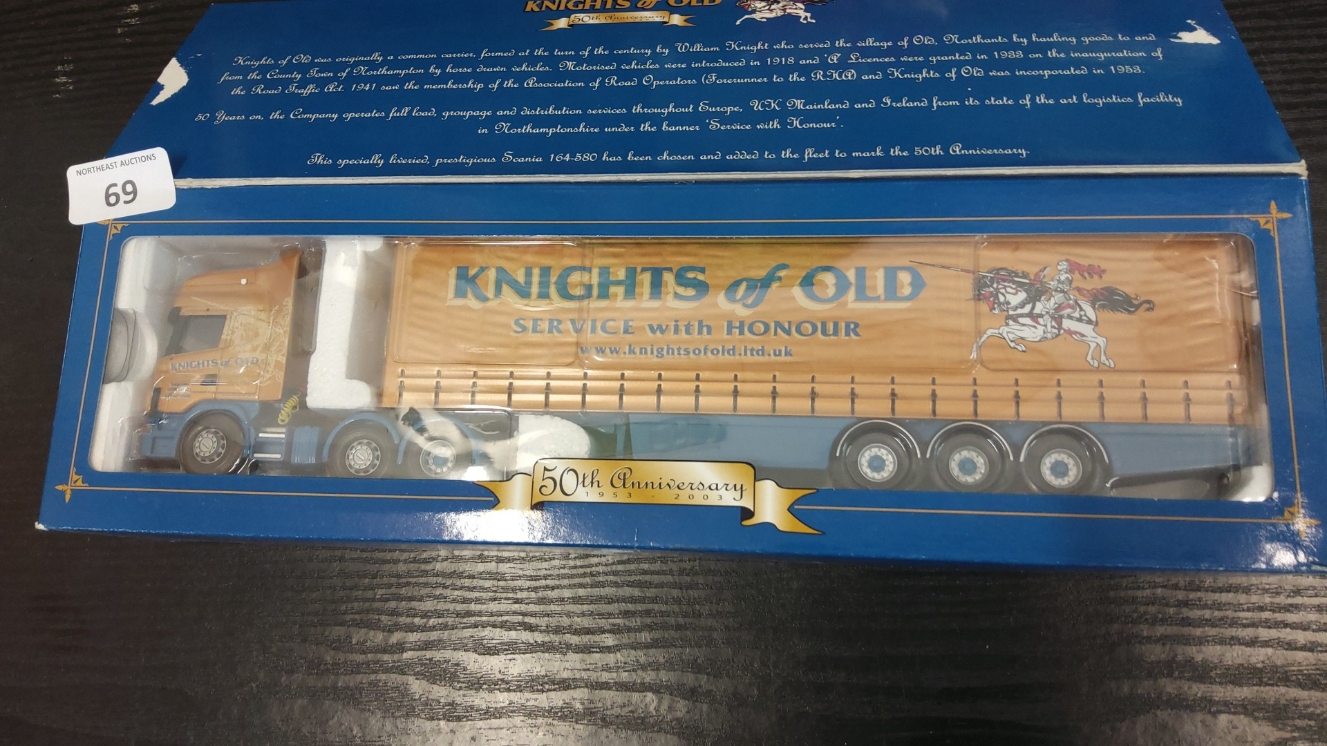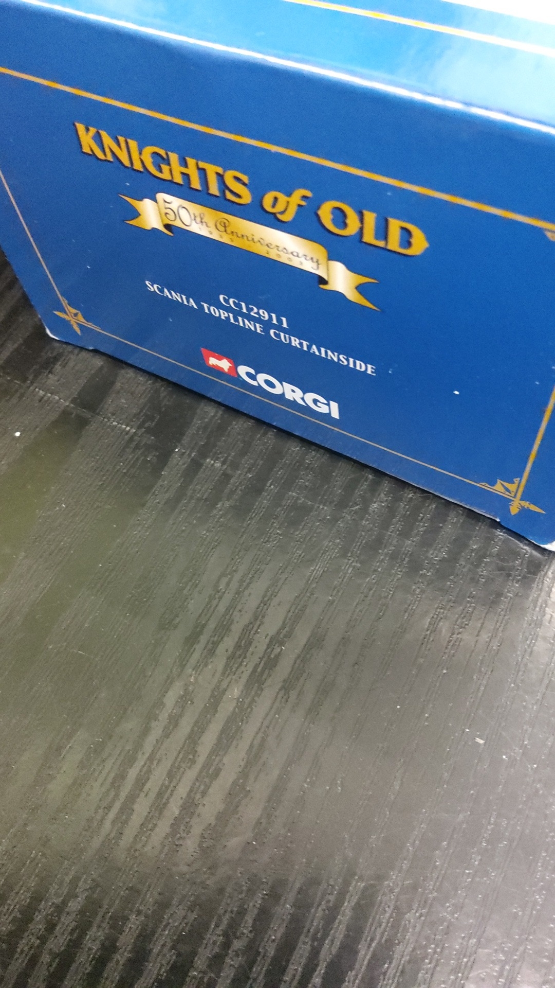 Corgi ‘Knights of Old’ 50th Anniversary model Scania Topline Curtainside articulated lorry, CC12911—die-cast truck and trailer with printed livery, presented in the original window display box.