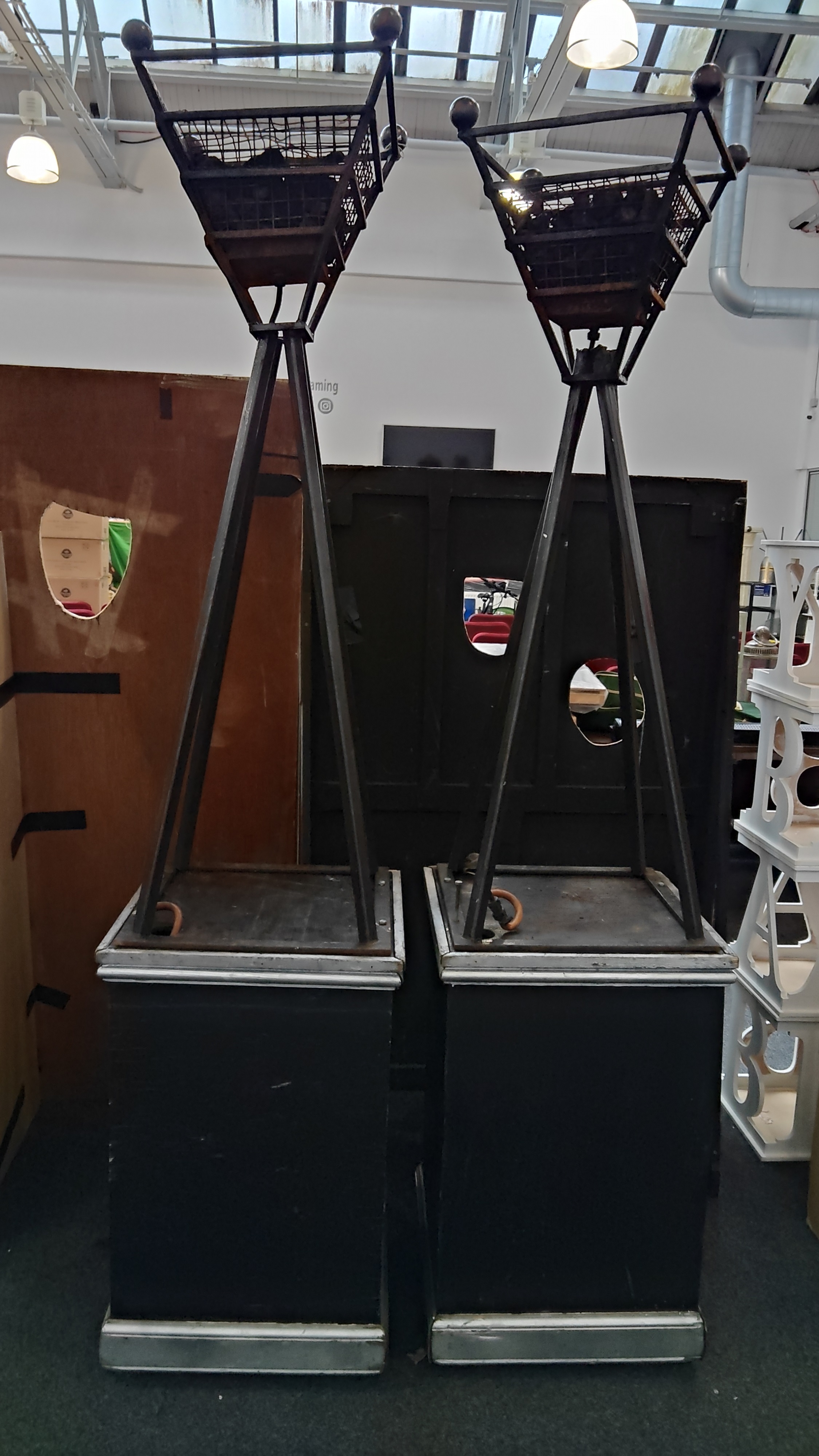 Pair of large gas fired coal effect burners on stands with 2 Large Boxes untested