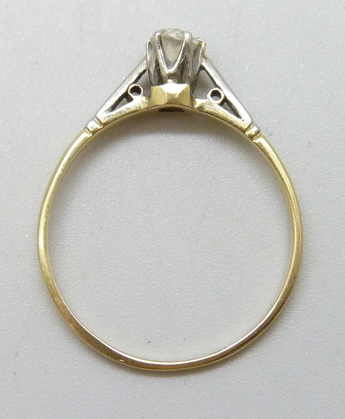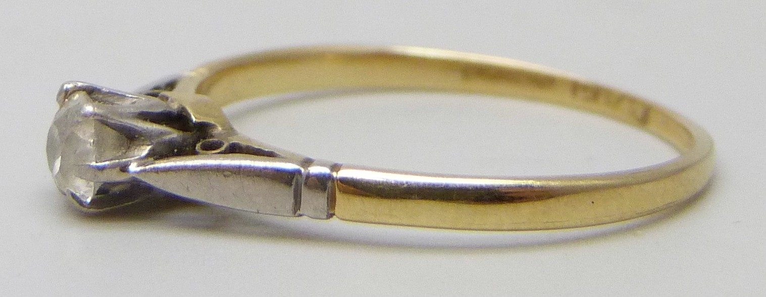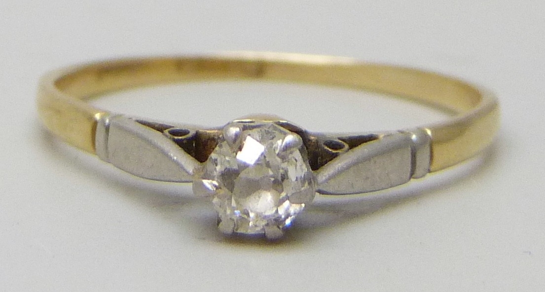 An 18ct gold and platinum old cut diamond solitaire ring, 1.2g, M