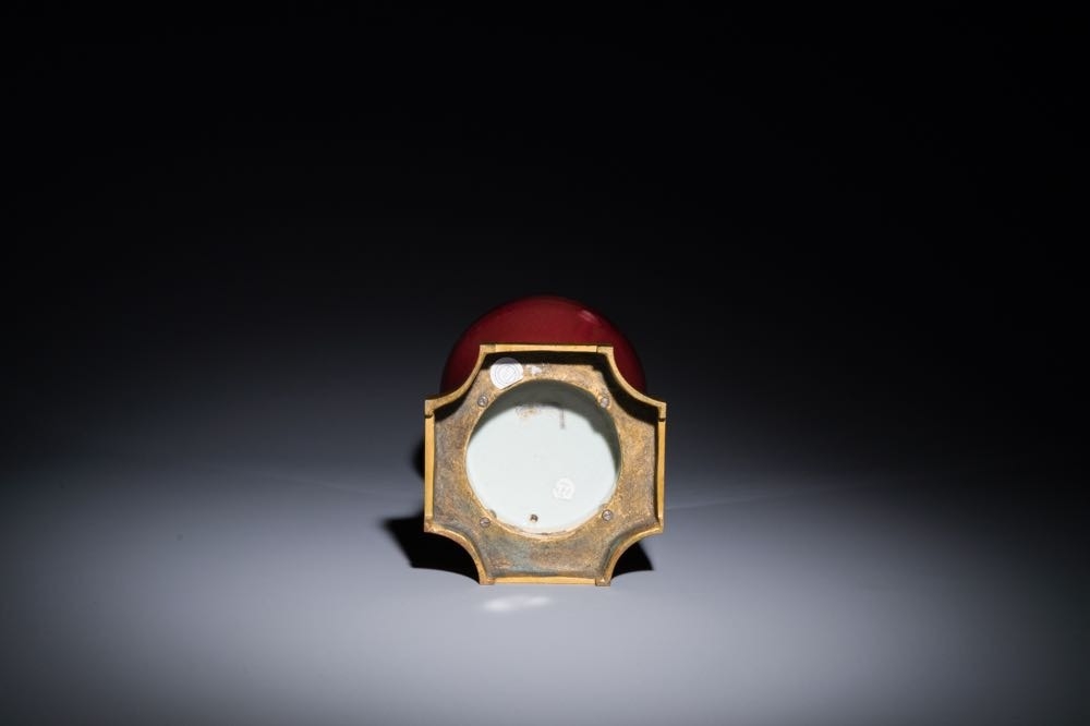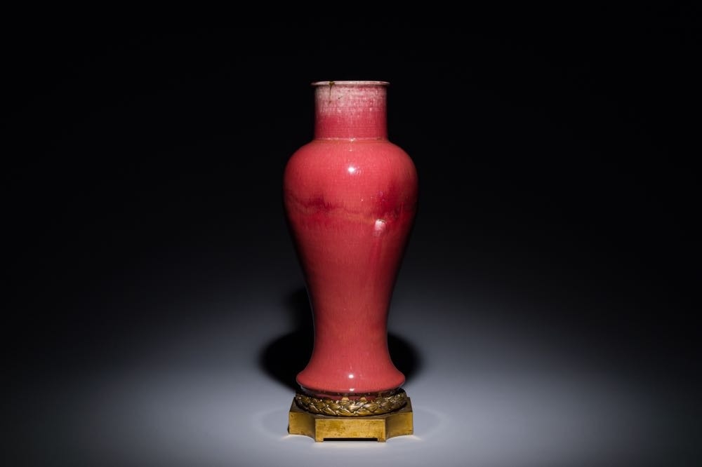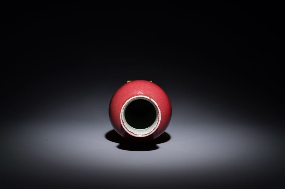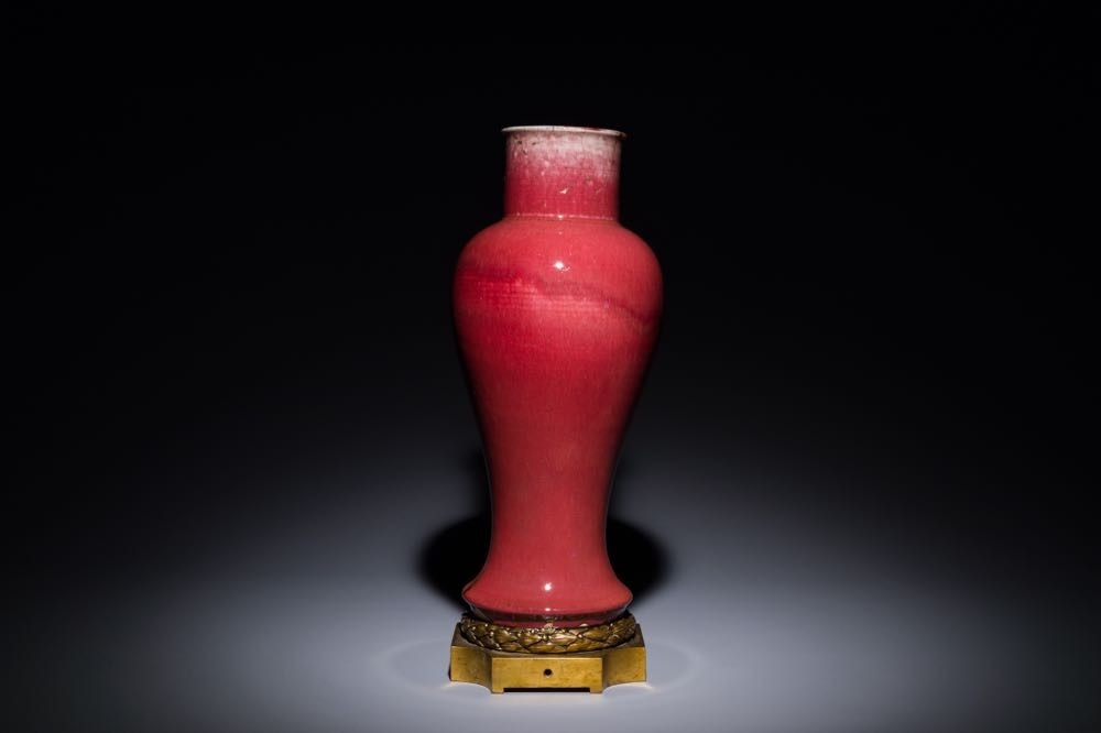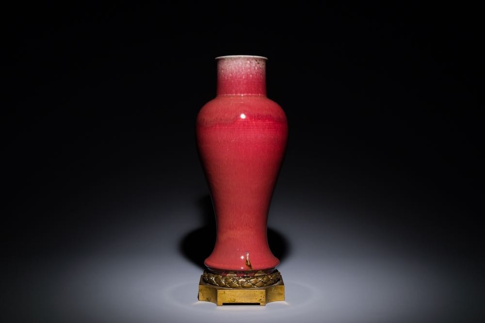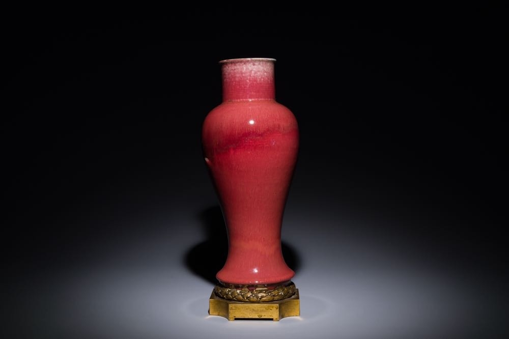 A Chinese langyao glazed 'guanyin zun' vase with a gilt bronze mount, Kangxi
