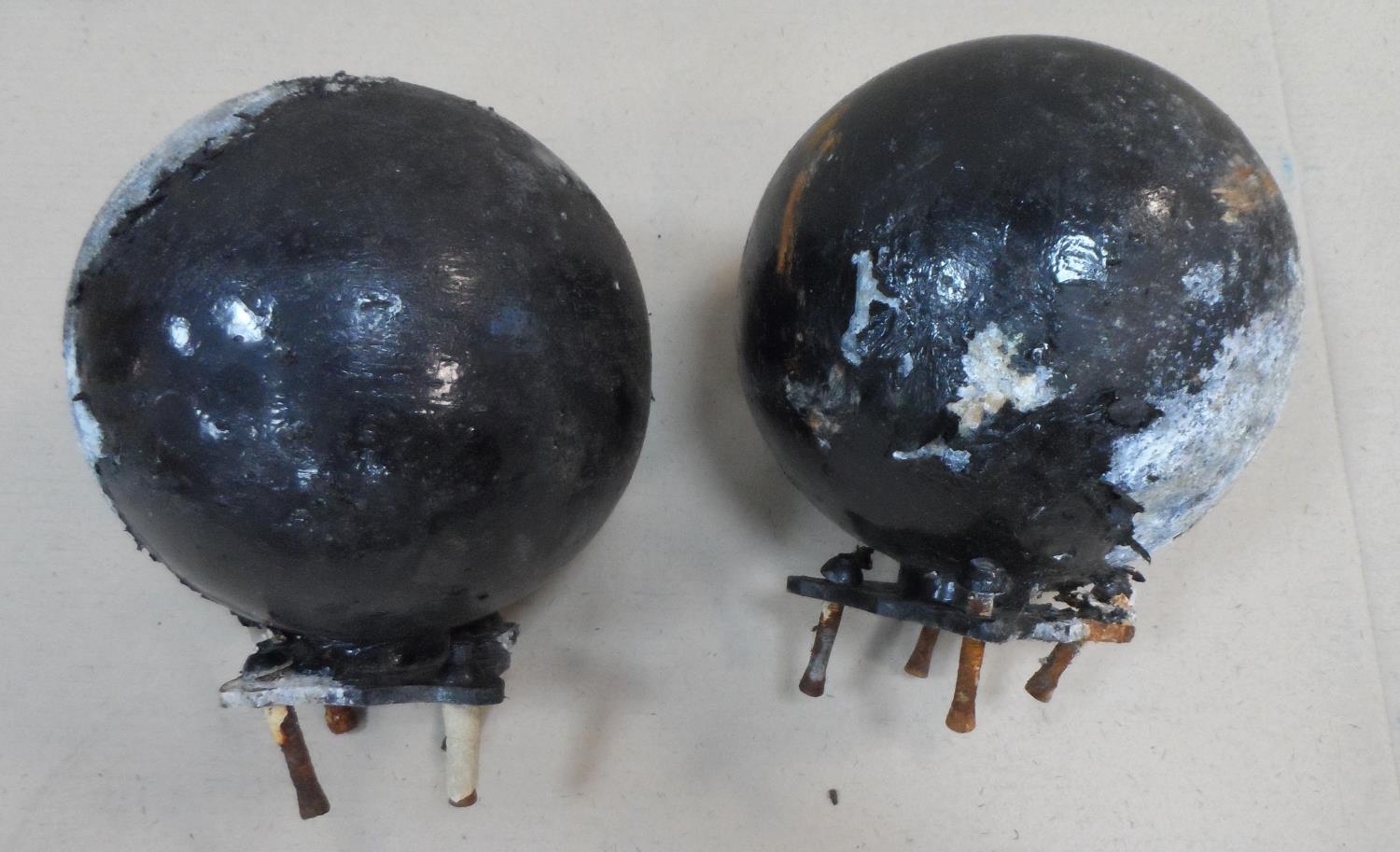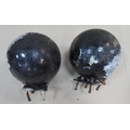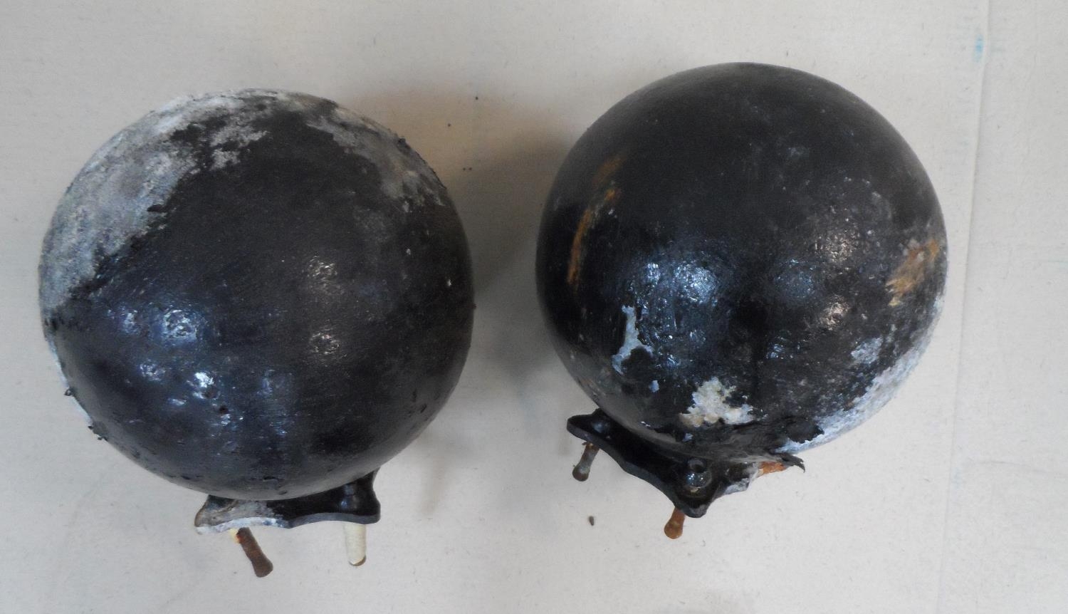 Pair of old, circular, cast iron gate post caps (2)