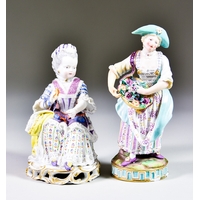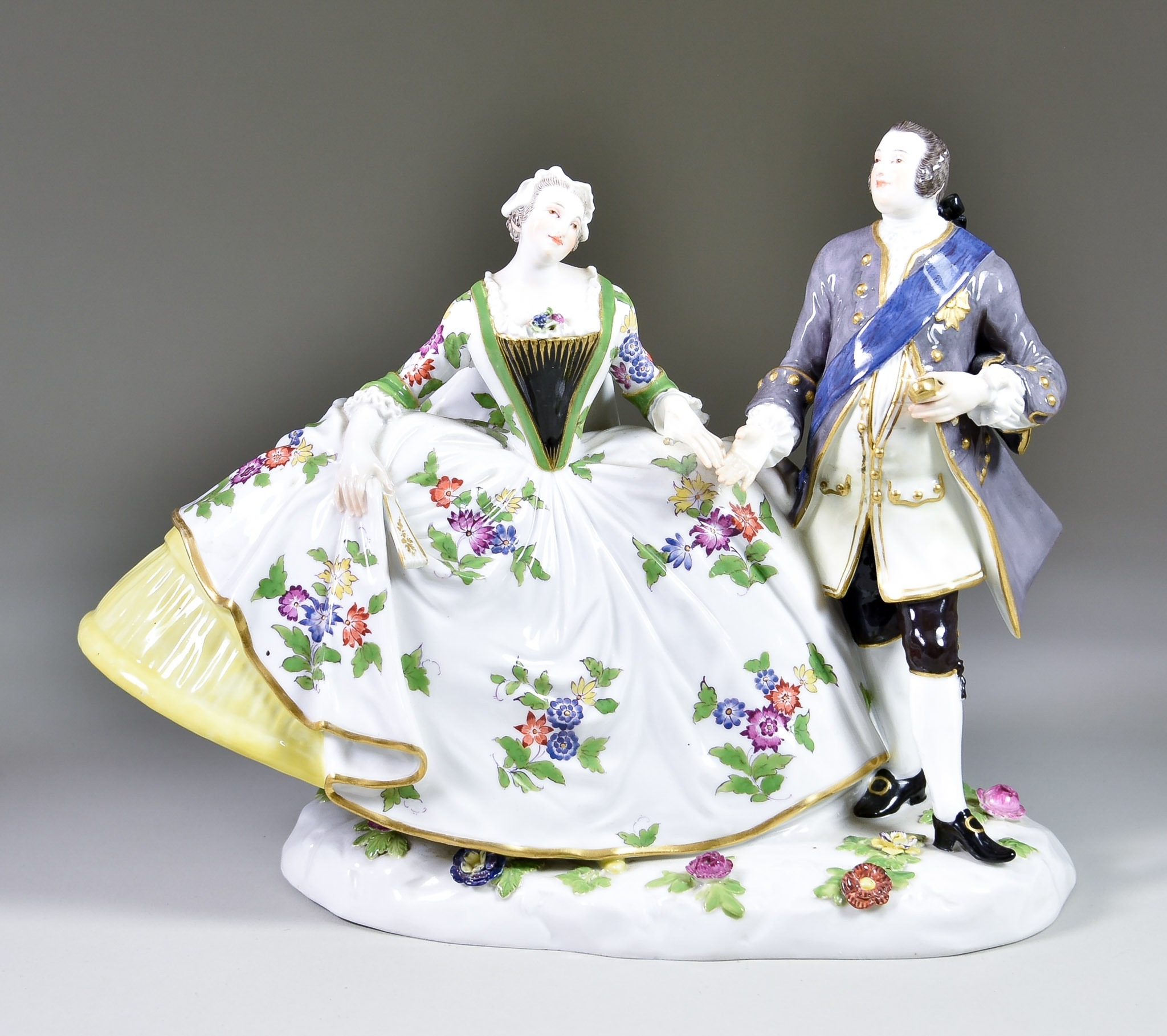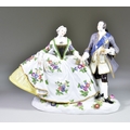 A Meissen Porcelain Crinoline Group of August III and Maria Josepha of Austria, designed by Johann Joachim Kaendler (1706-1775), model No. 550, with painted blue mark to base, 9ins high