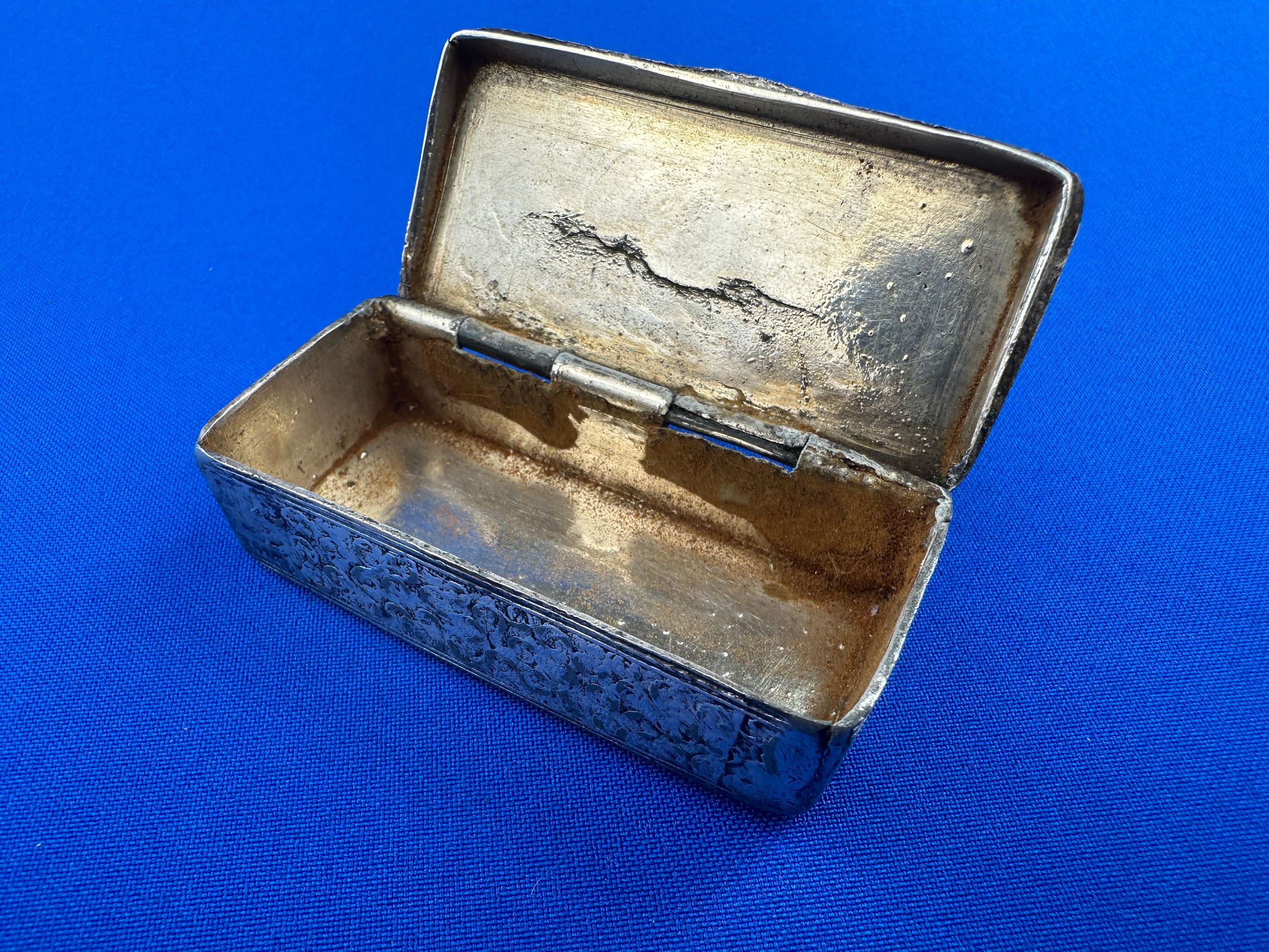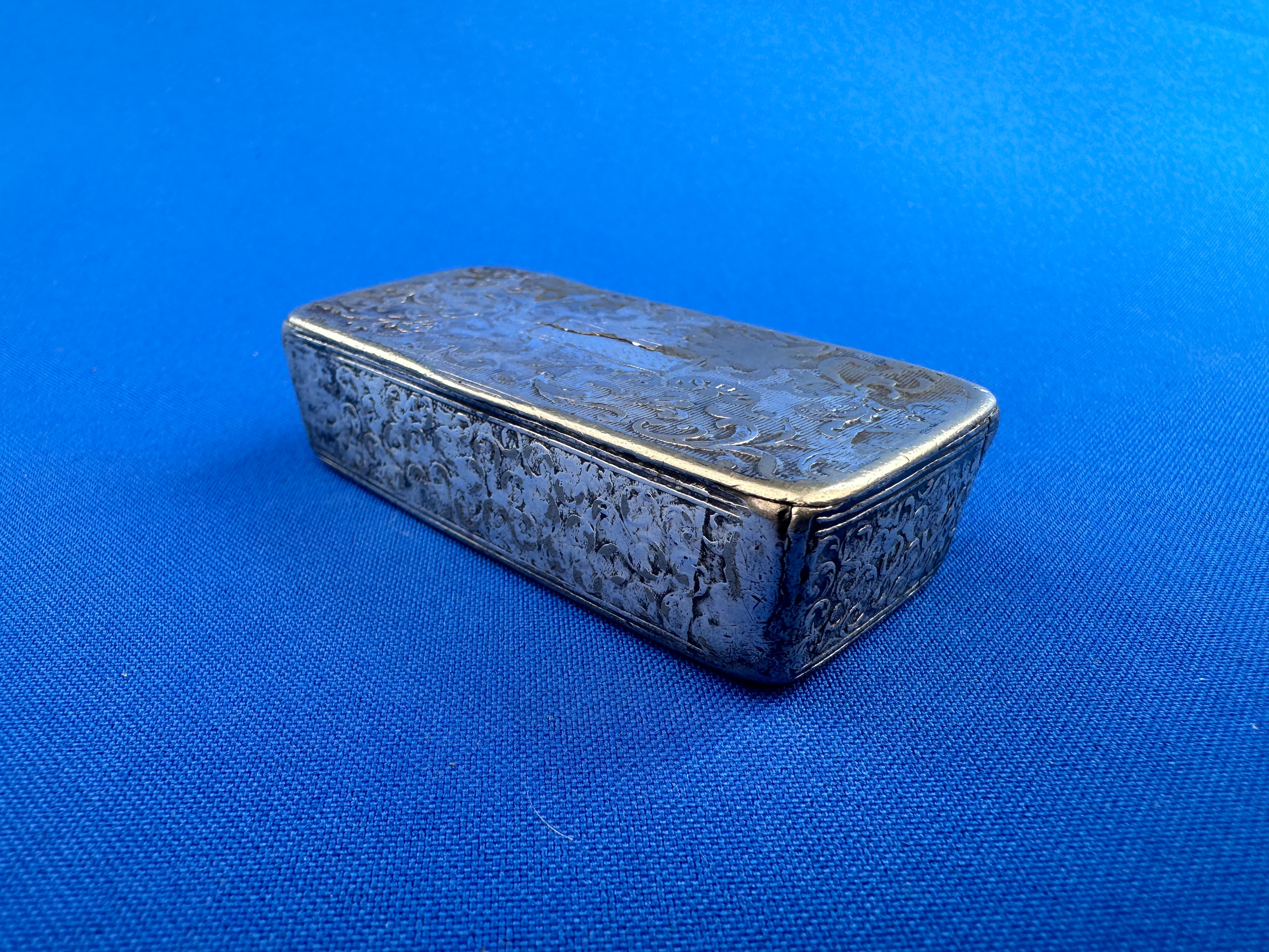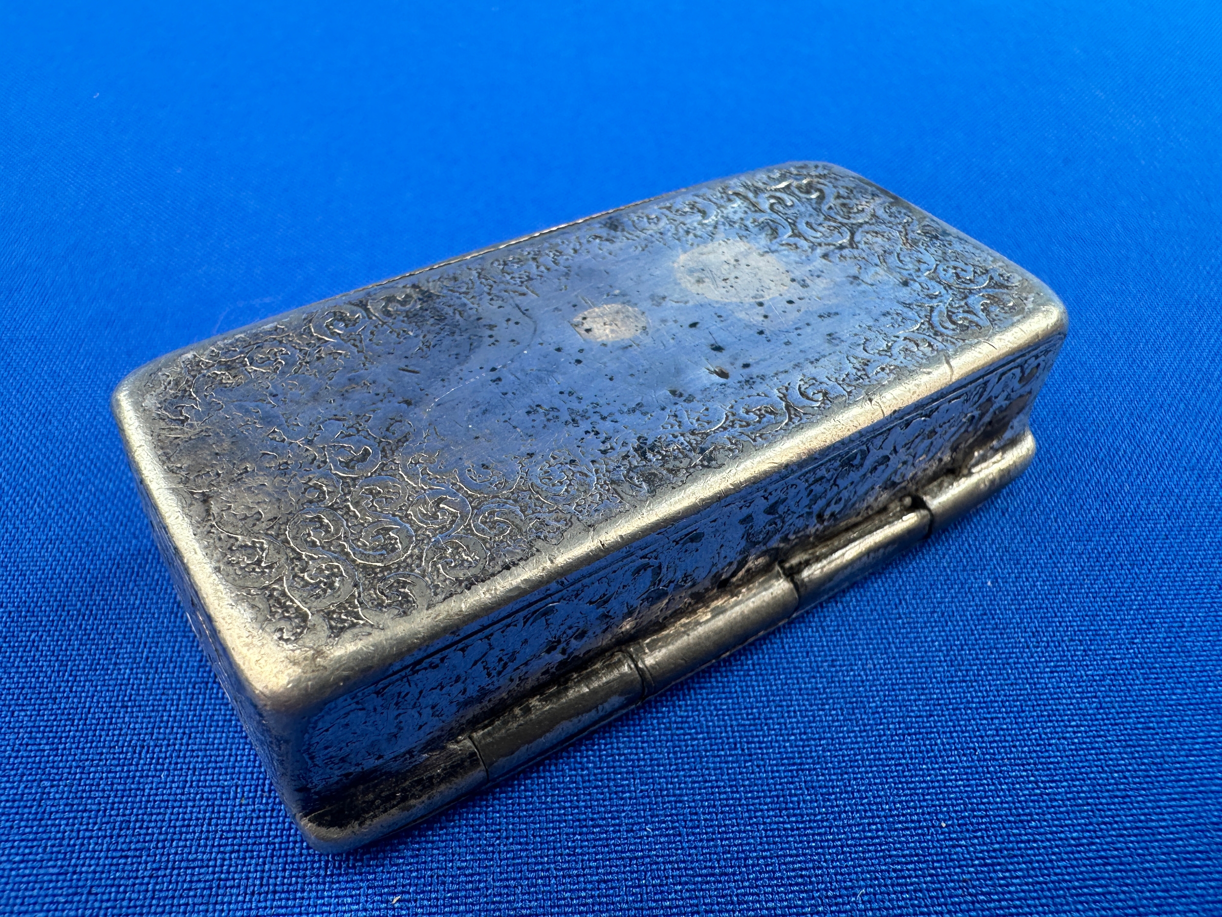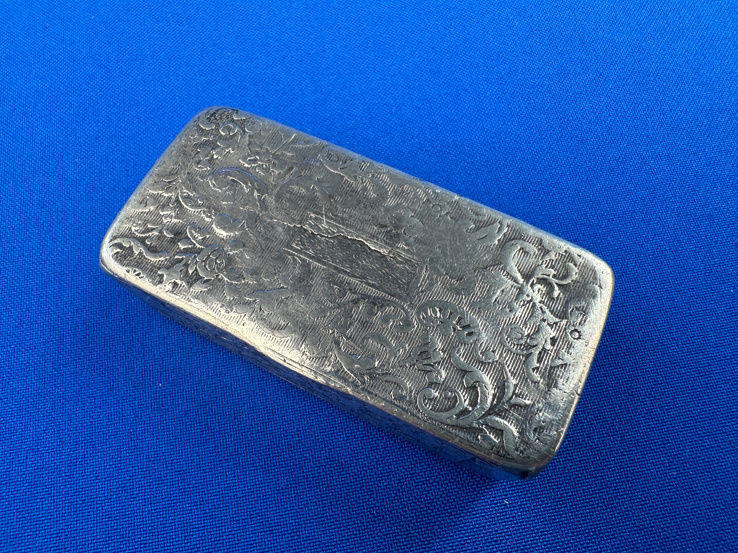 Antique Hand Engraved Silver Snuff Box - Well worn, no hallmarks but Tests as Silver