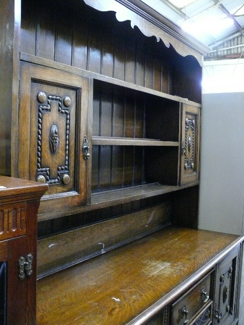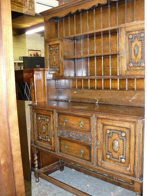A VERY ATTRACTIVE OLD CHARM OAK DRESSER.