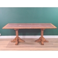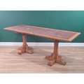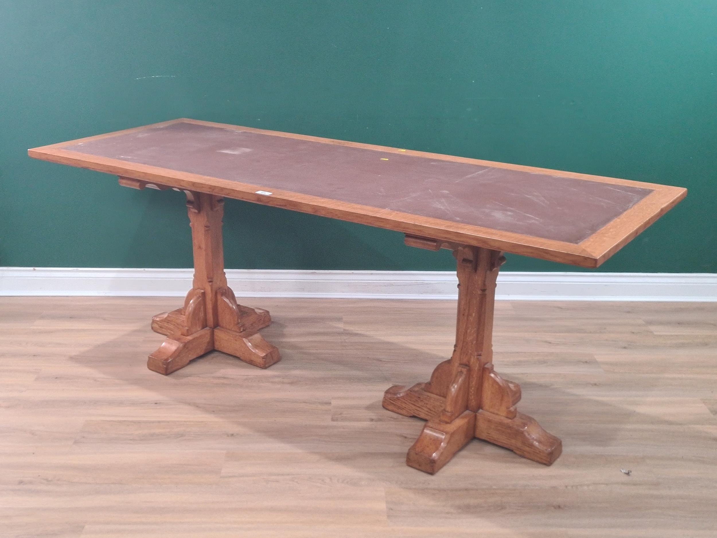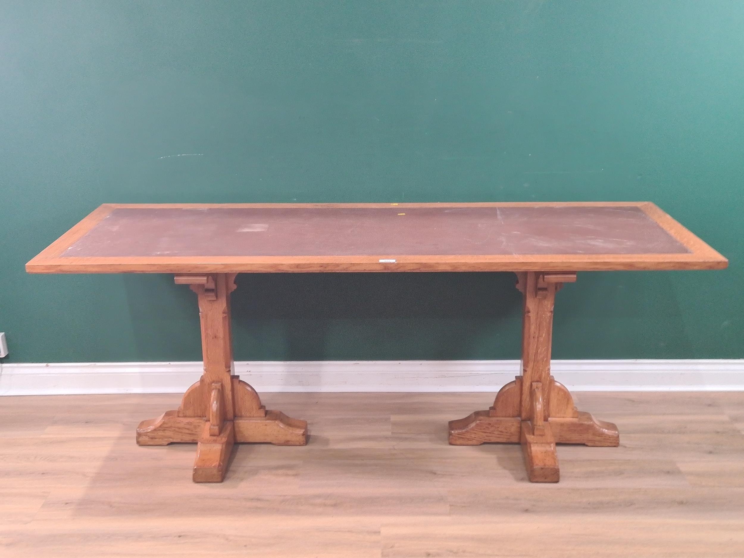 A large oak Library Table with leather inset top raised on carved quadruple legs, 2ft 6" H 6ft 6" L 2ft 5" D (R6).