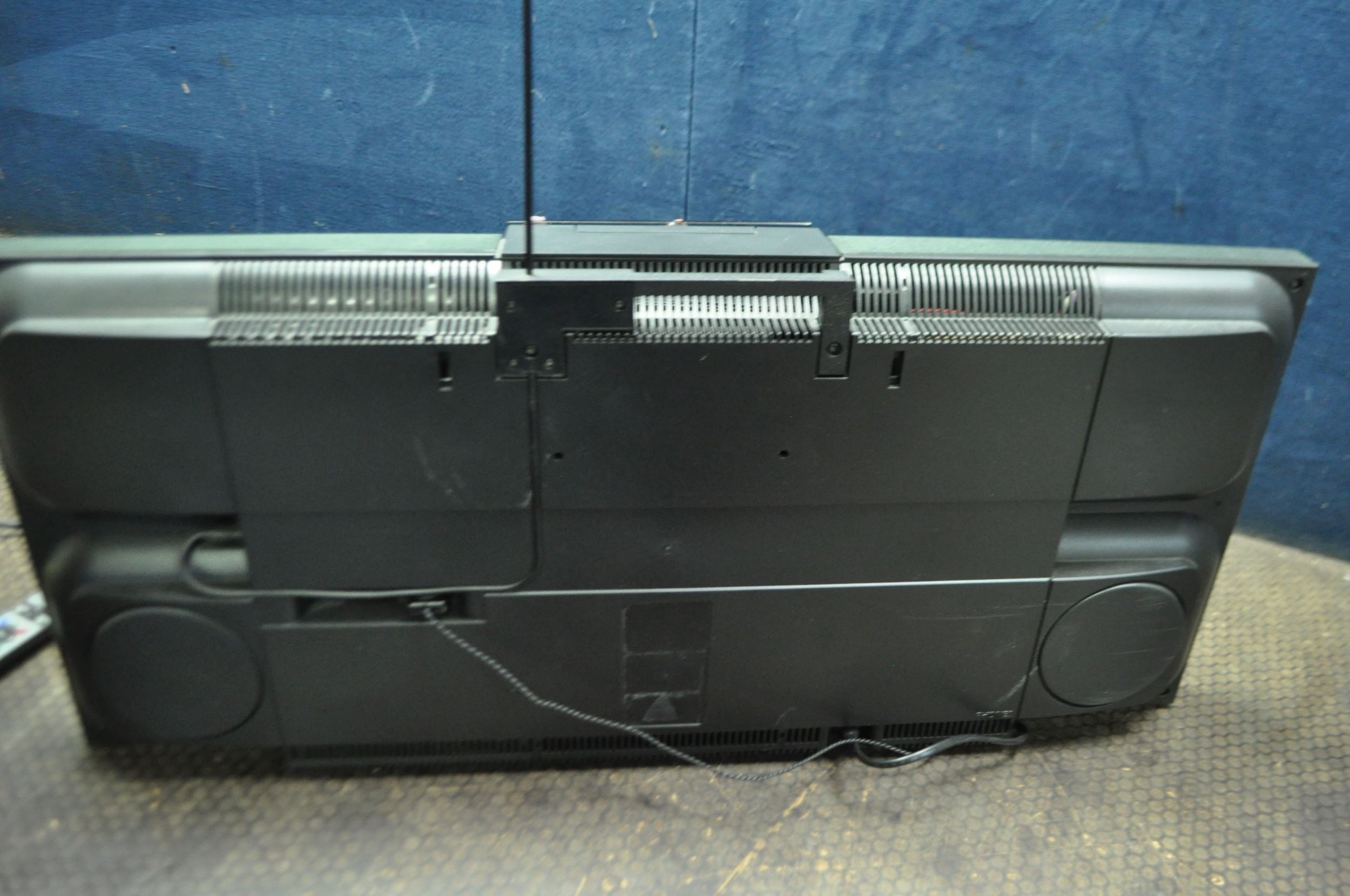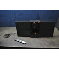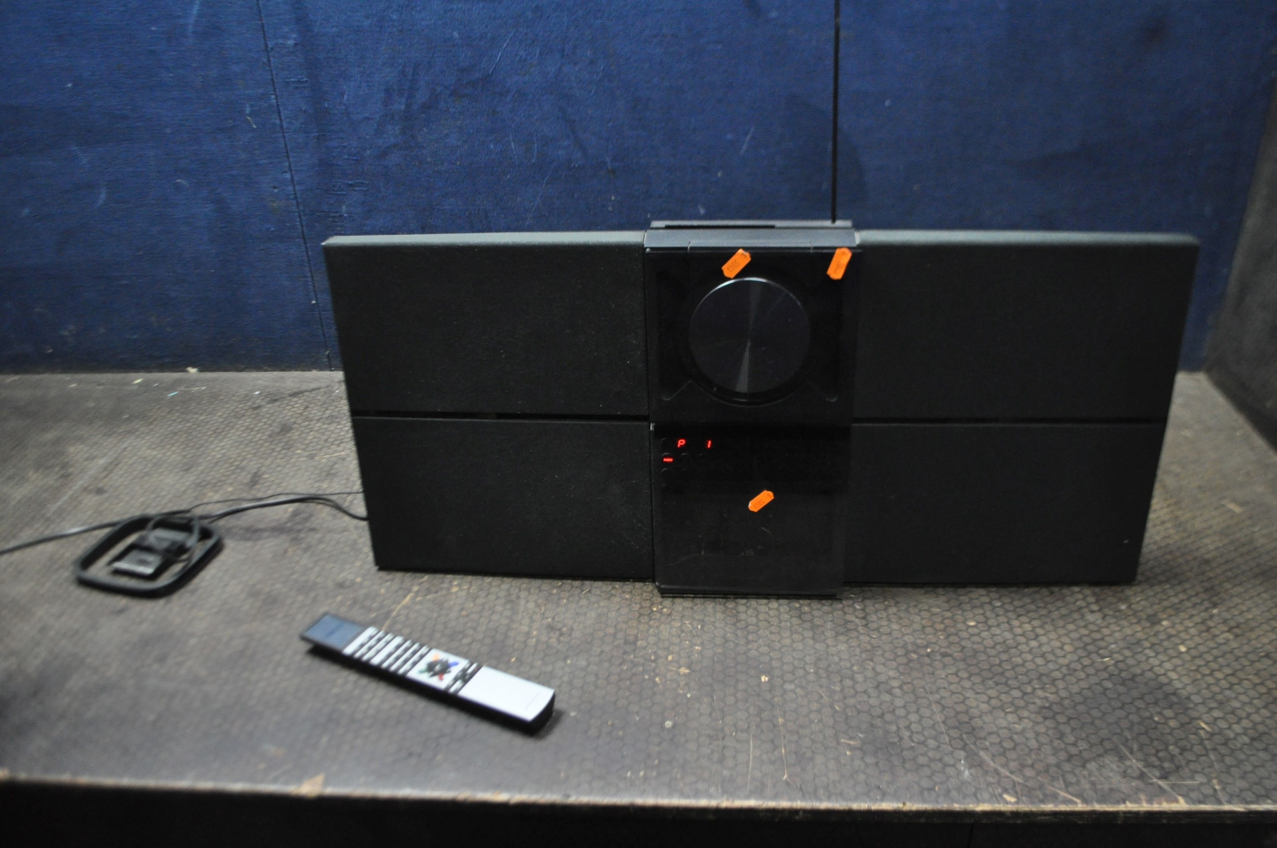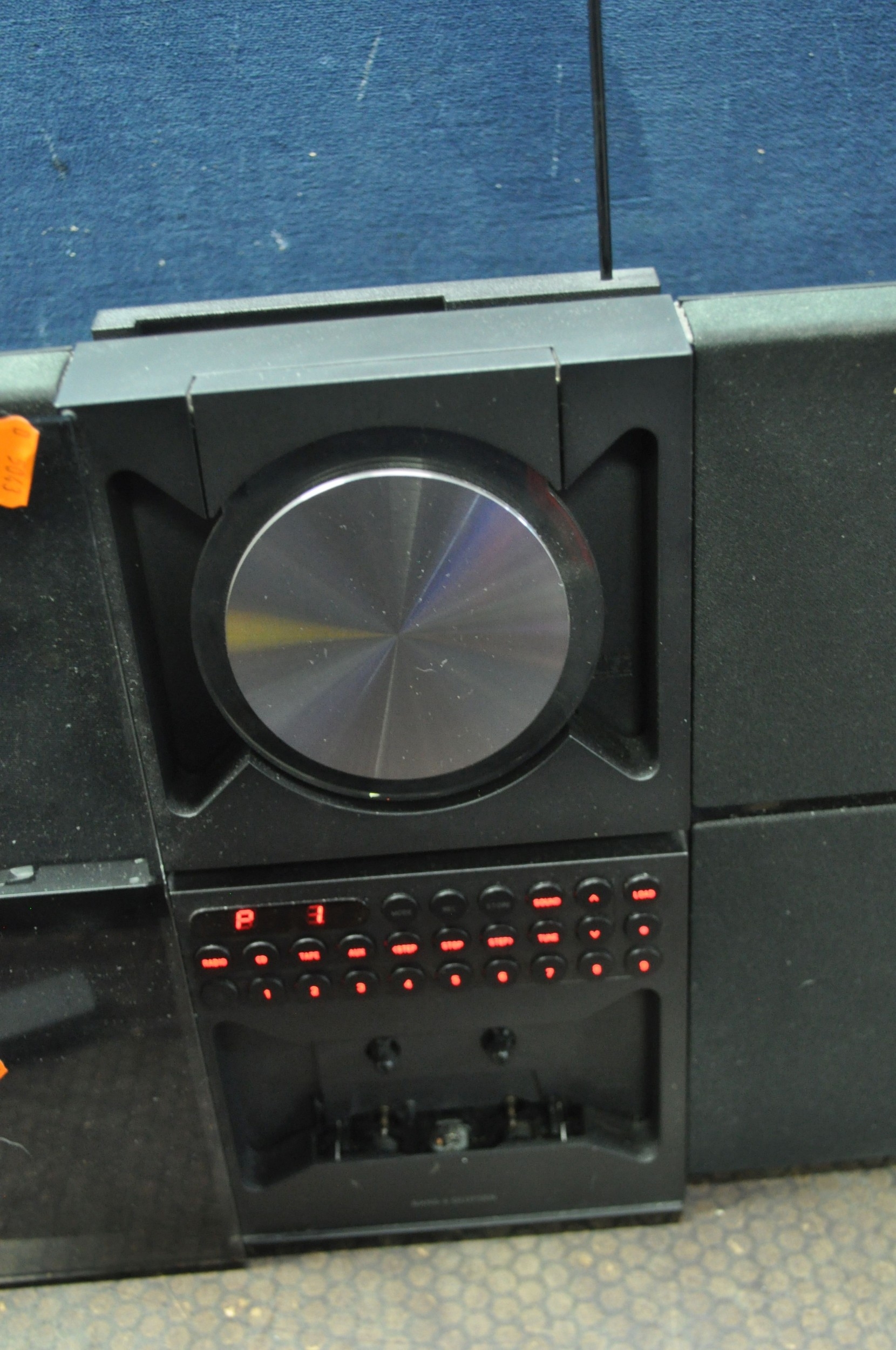 A BANG AND OLUFSEN BEOSOUND CENTURY MUSIC CENTRE with attached speakers, aerial and remote (PAT pass and working but CD doesn't read discs and door opens but needs pushing to close)