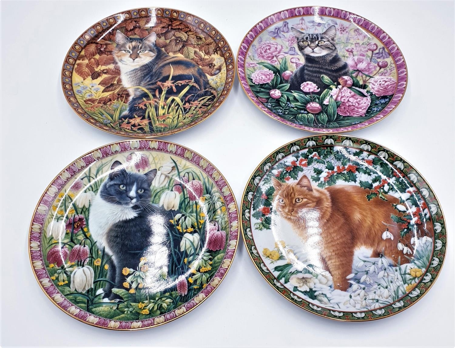 DANBURY MINT PORCELAIN 21cm Dia CAT PLATES (4) FROM THE FOUR SEASONS COLLECTION