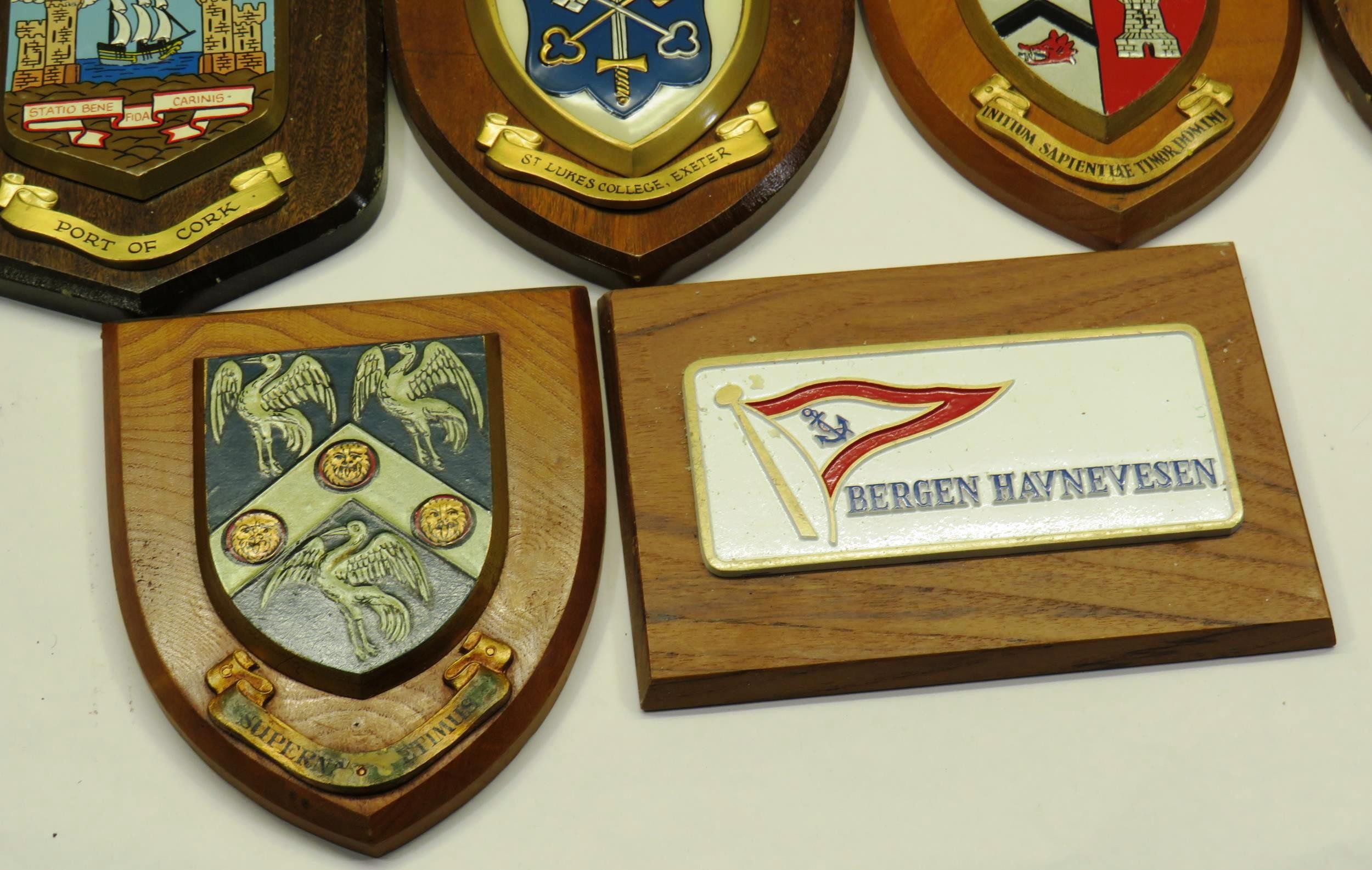 ASSORTMENT OF WOODEN COAT OF ARMS PLAQUES