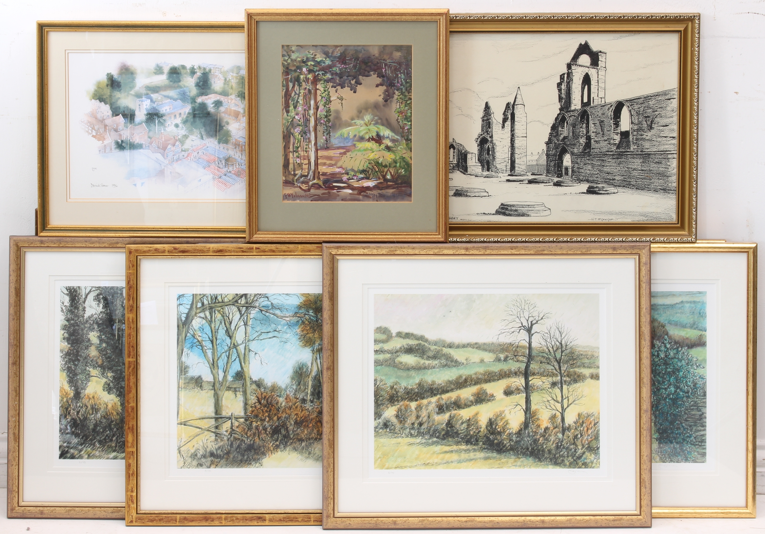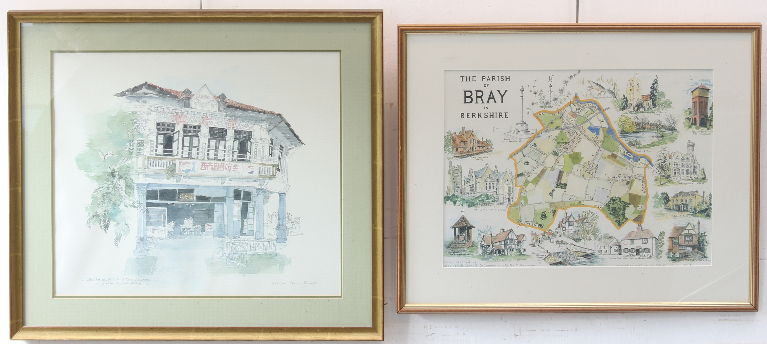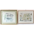 Eleven framed and glazed decorative wall-hanging pictures and prints to include colour limited edition prints and a a map of the Parish of Bray, Berkshire