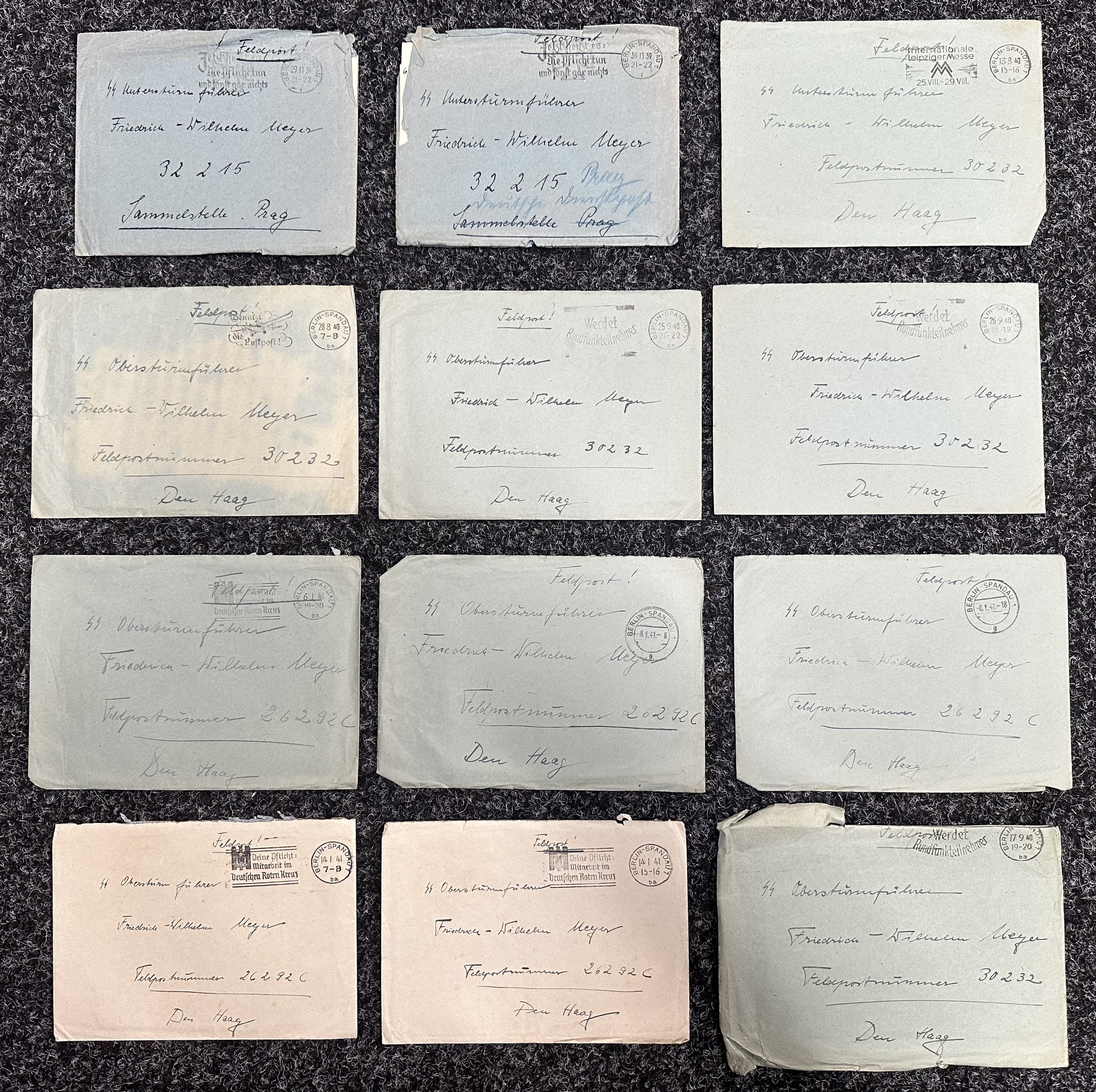 WW2 Third Reich Waffen SS Feldpost letters 12 in total all addressed to SS-Untersturmfuhrer Friedrich Wilhelm Meyer, an officer in SS-Totenkopf-Standarte 4 "Ostmark" based in Holland. Letters dated 1939-1941 and sent from his wife in Berlin.