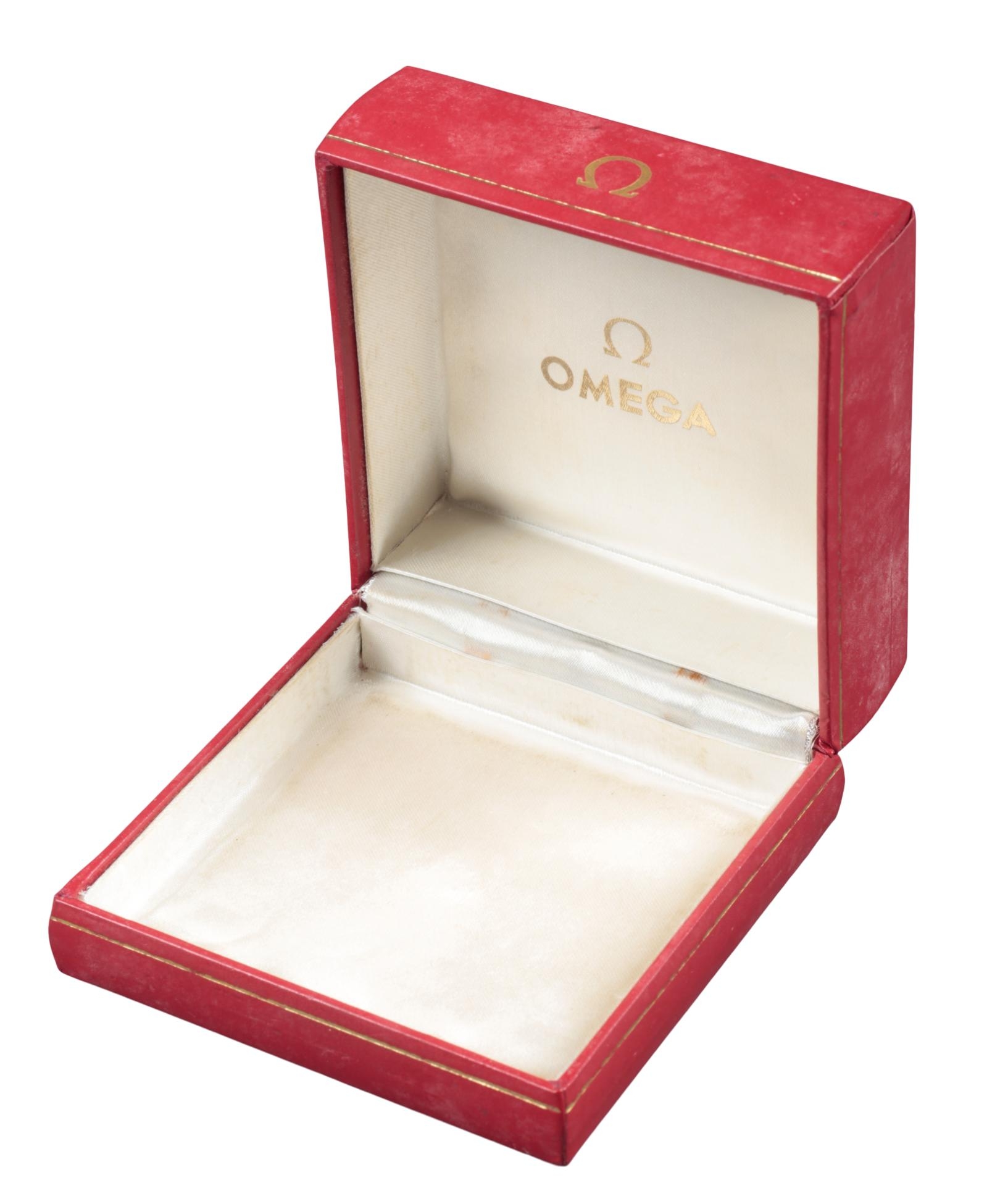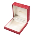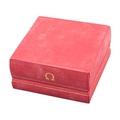 OMEGA: A RED LEATHERETTE WATCH BOXwith white silk lining, circa 1980s, 5cm x 10cm