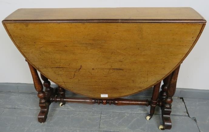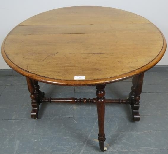 A large Victorian mahogany oval Sutherland table, on baluster turned supports, terminating on ceramic castors.