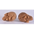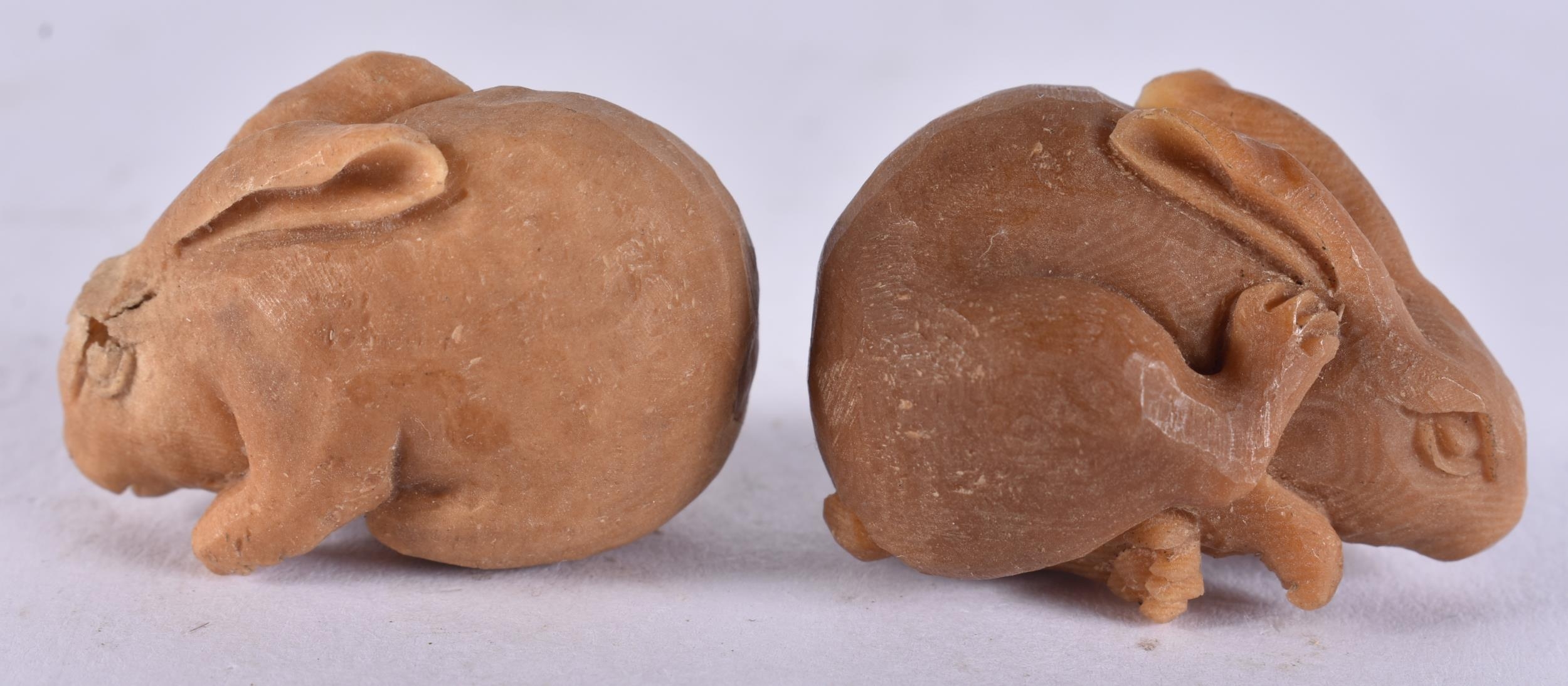 TWO JAPANESE TAGUA NUT RABBITS. 18 grams. 2.25 cm x 3.25 cm....
