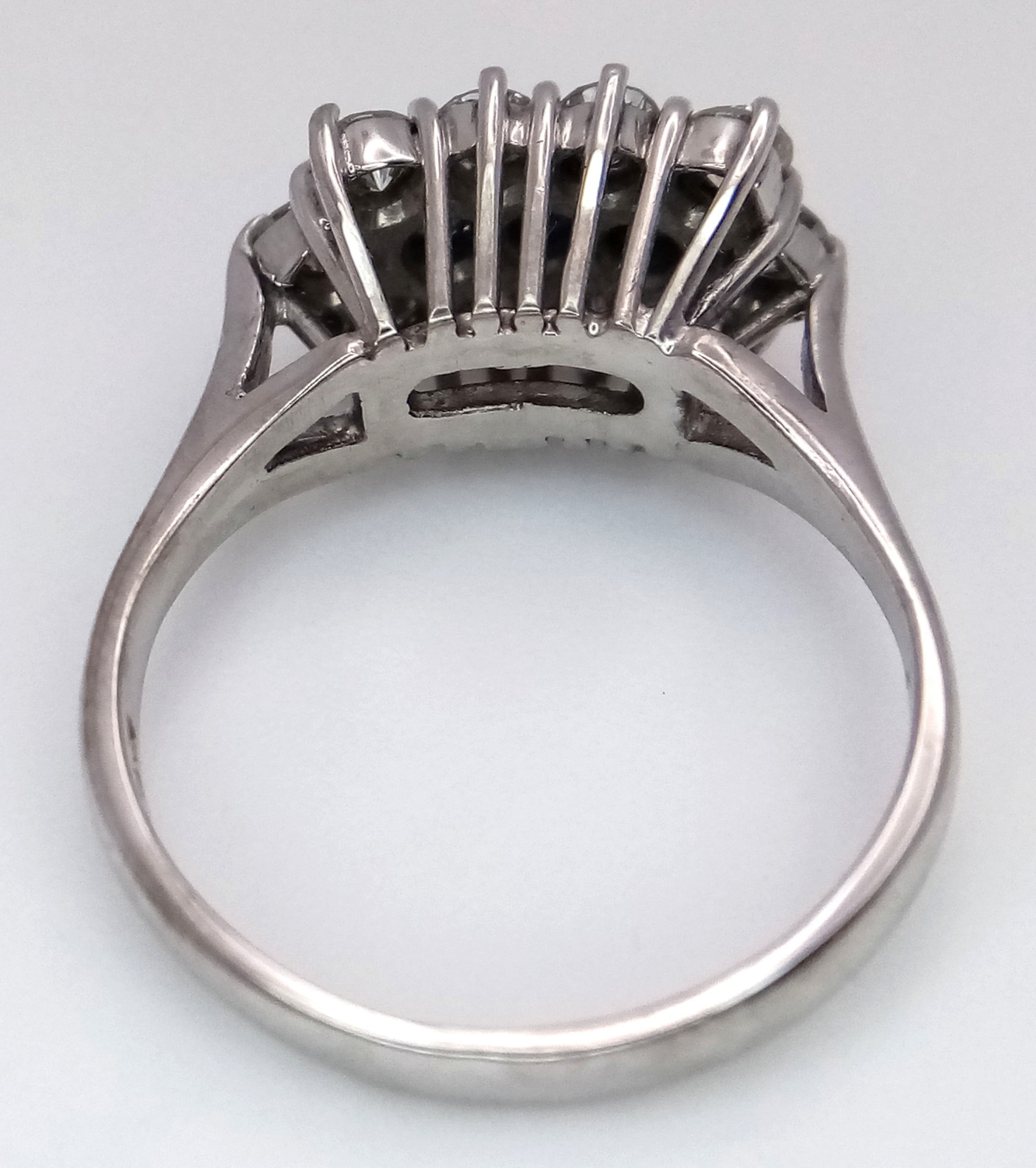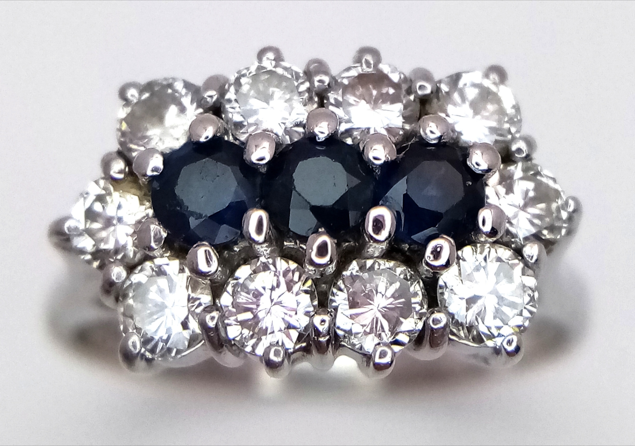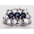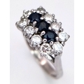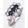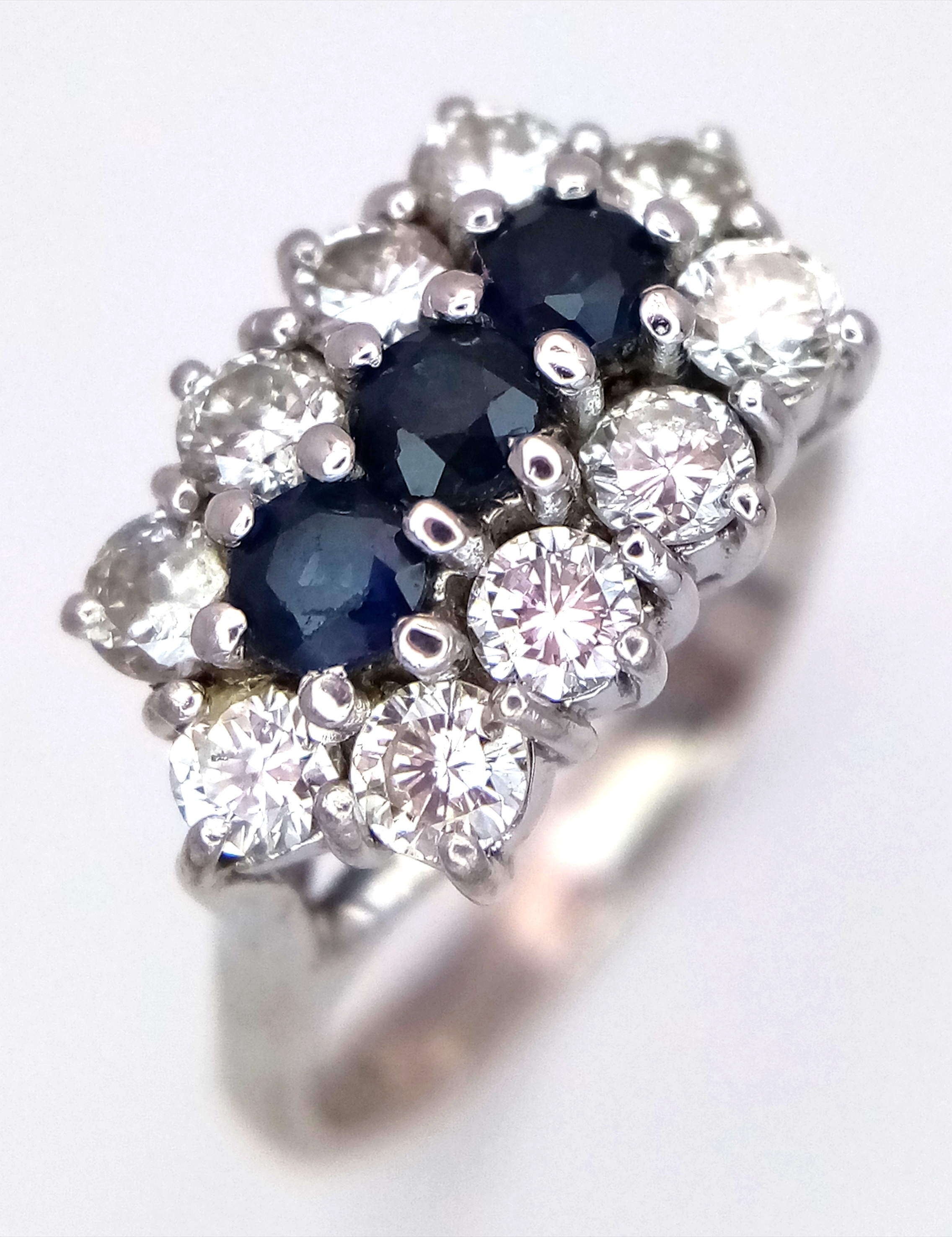 AN 18K WHITE GOLD DIAMOND AND SAPPHIRE RING. 0.50CTW DIAMONDS. 4.9G, SIZE N. SPSA-3021.