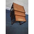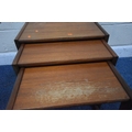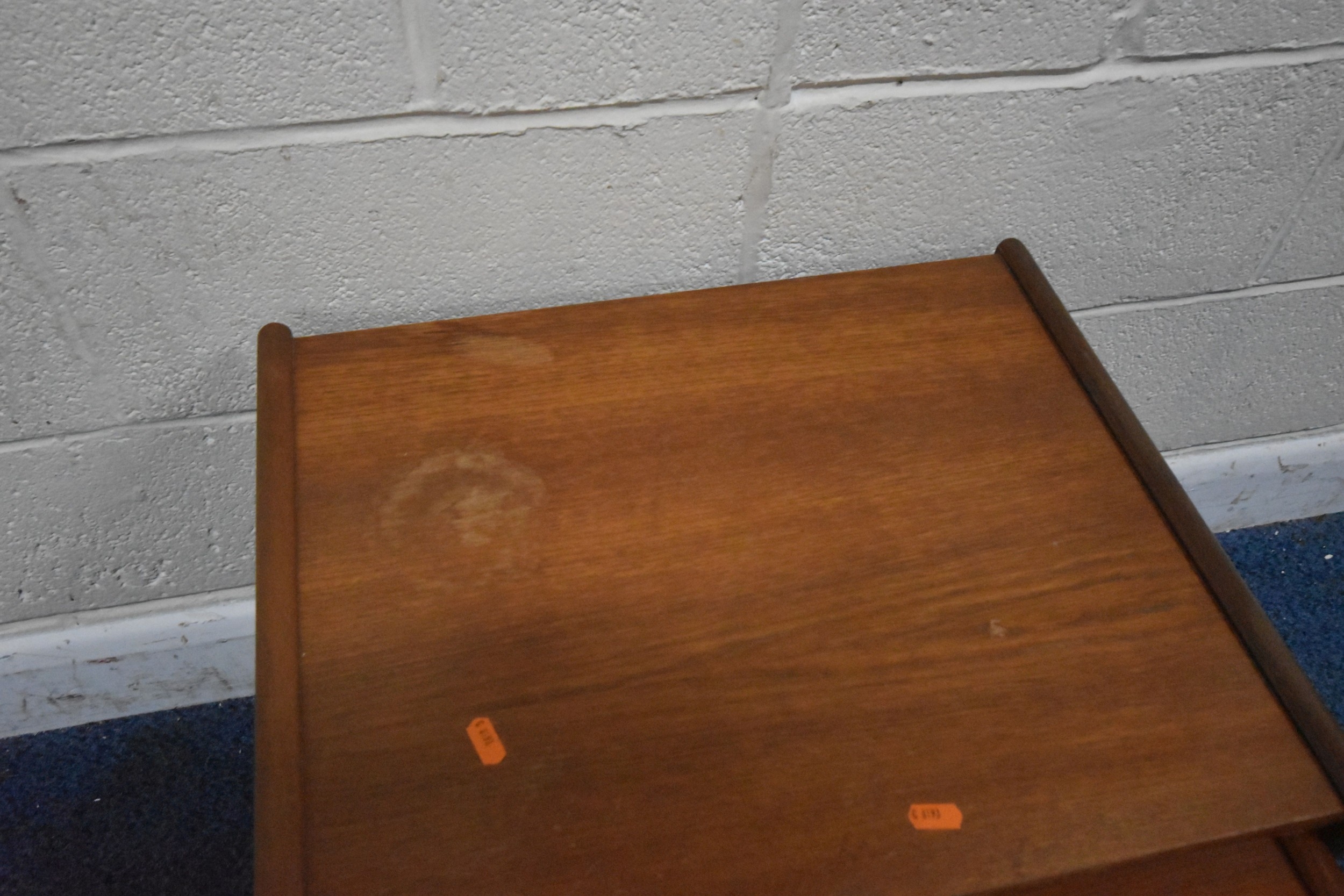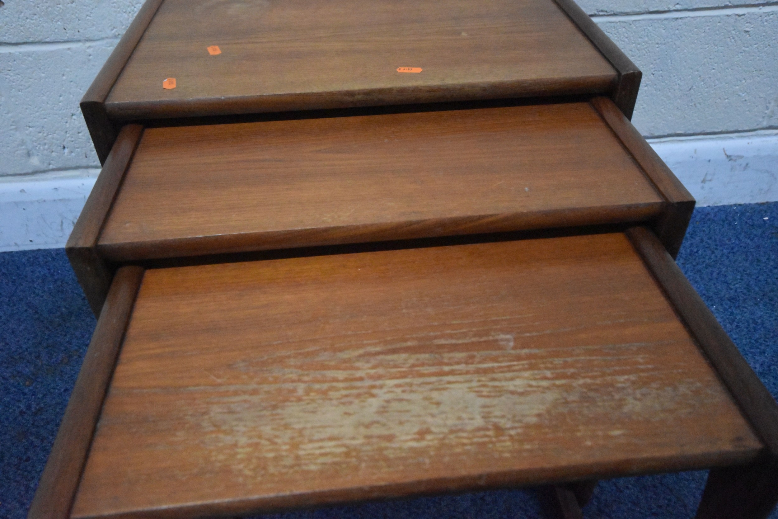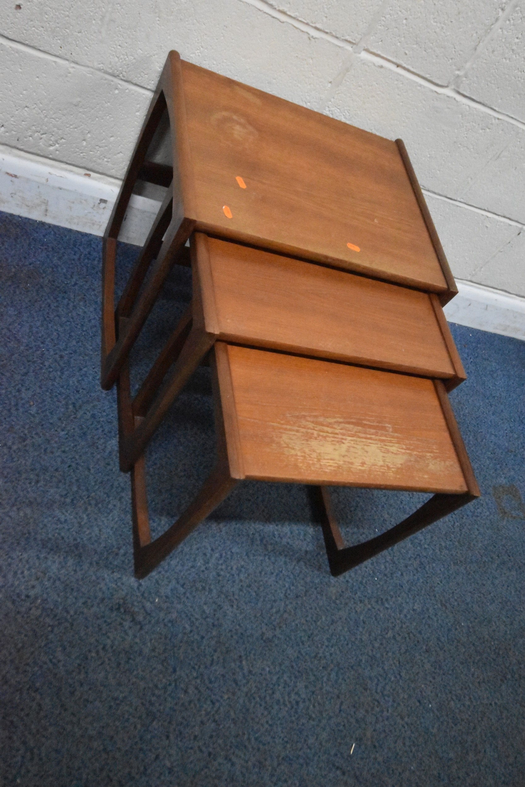 A MID-CENTURY TEAK G PLAN QUADRILLE NEST OF THREE TABLES, largest table width 54cm x depth 44cm x height 49cm, condition report: marks, scuffs, stains, discolouration, other wear and usage