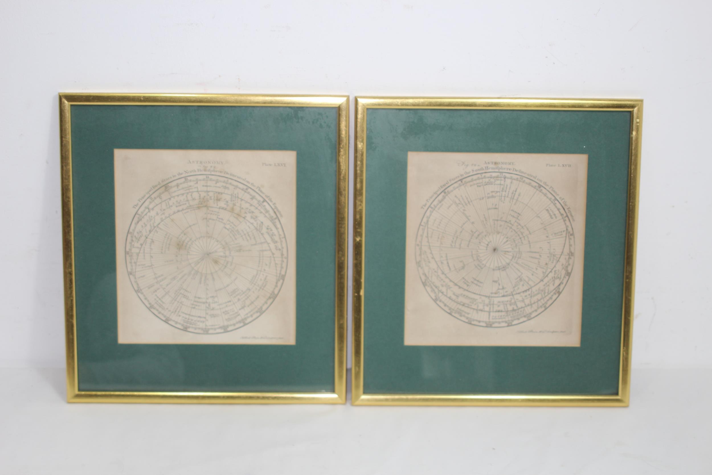PAIR OF BELL SCULPTURE PRINTED PLATES OF FIXED STARS FROM THE NORTHERN AND SOUTHERN HEMISPHERE