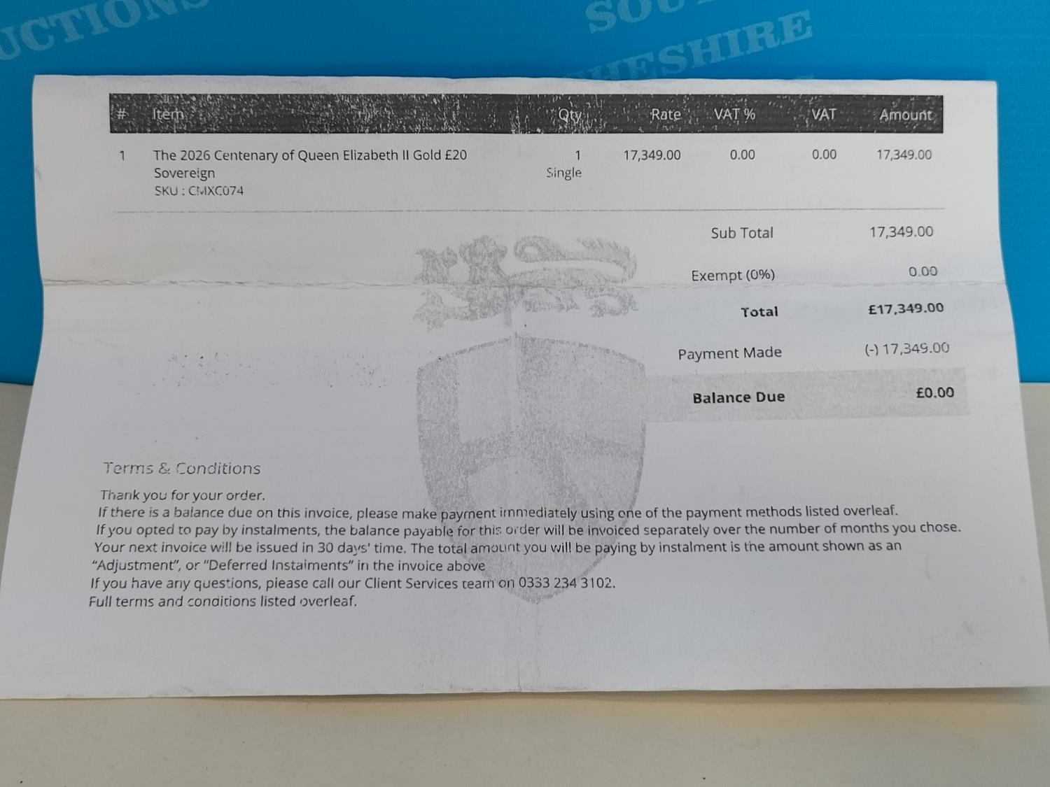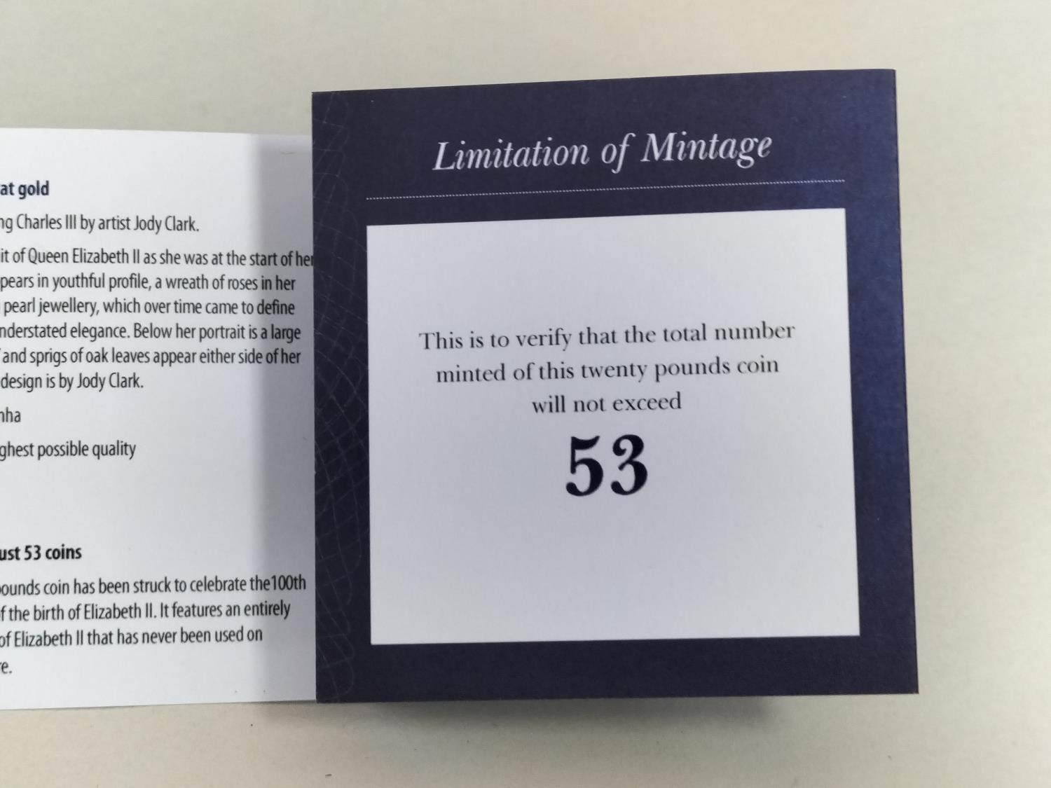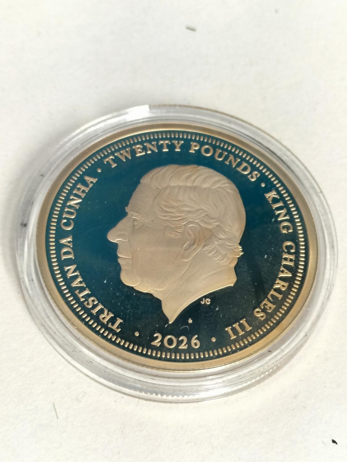 Rare Hatton's of London 2026 King Charles III Tristan Da Cunha 22ct Gold Twenty Pound Coin '100th Anniversary of the Birth of Queen Elizabeth II'. Limited Mint of 53 Worldwide. Weight 2.5oz (70.8 Grams), Cased.