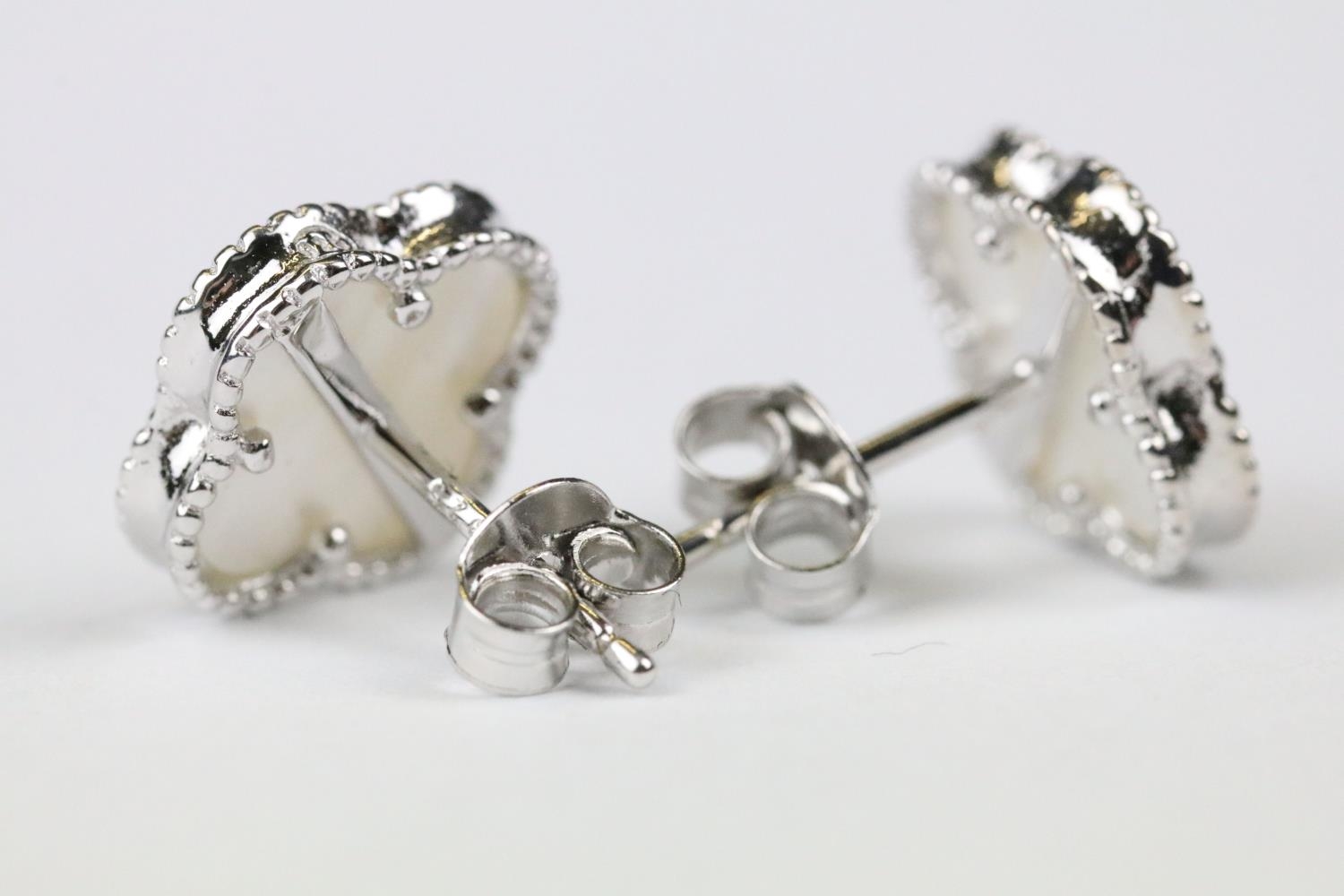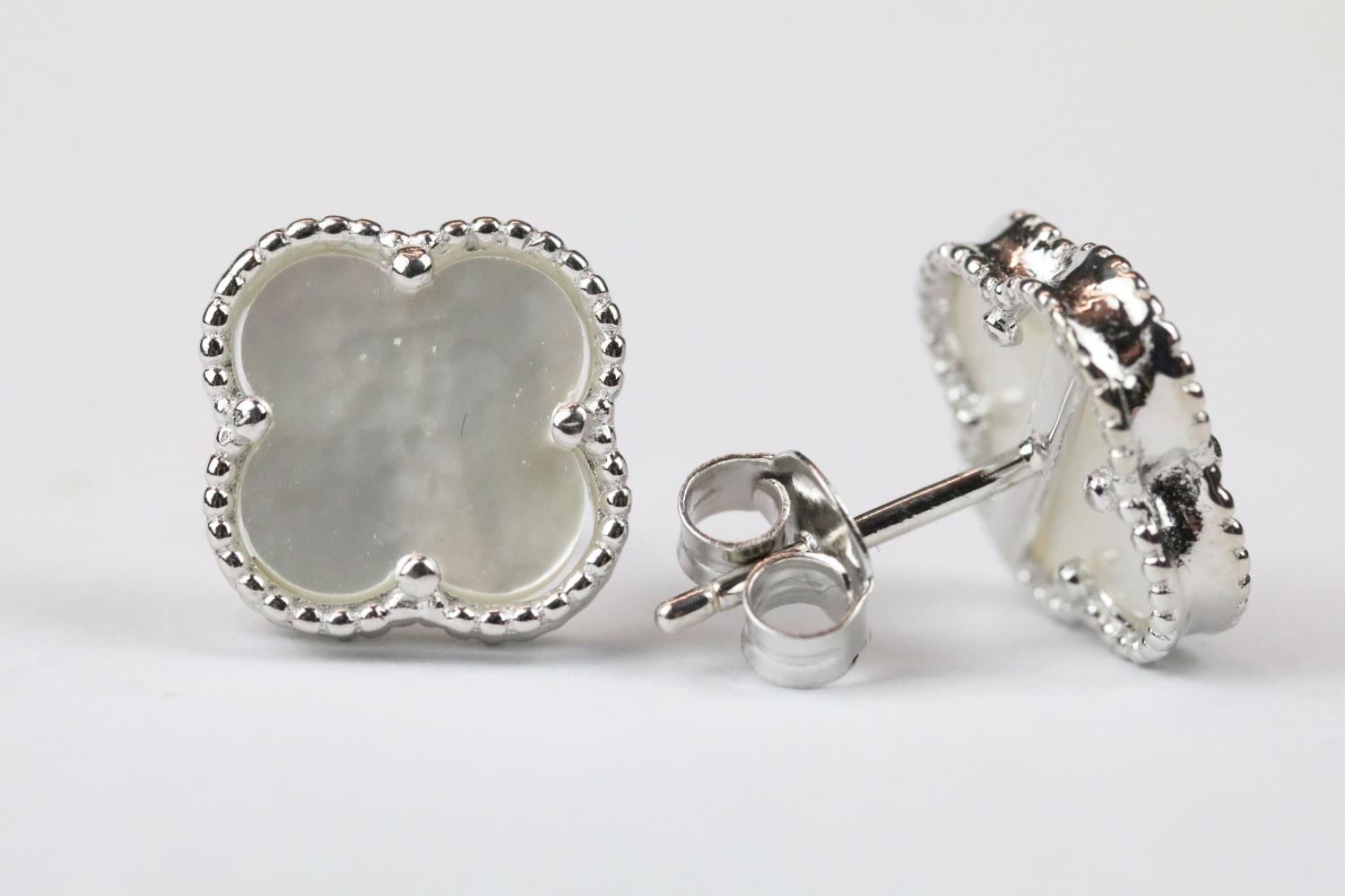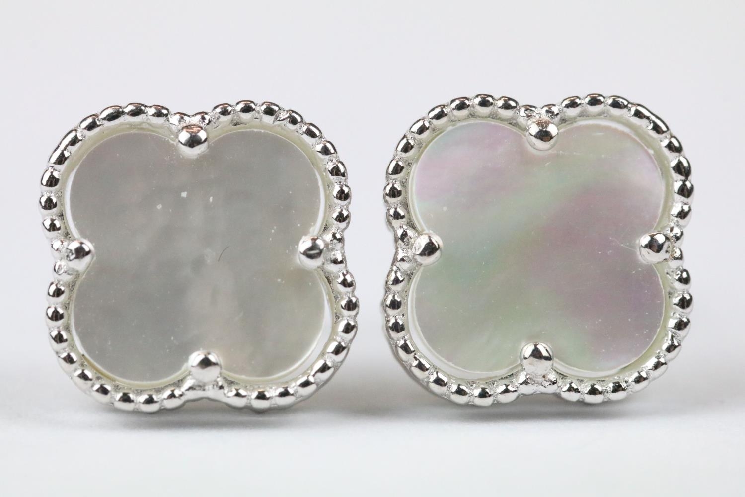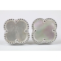 Pair of silver and mother of pearl four leaf clover stud earrings