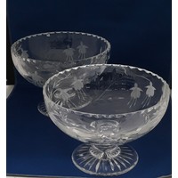 Pair Stuart Crystal Fuchisa center table comport bowls boxed 11cm tall 17cm diameter