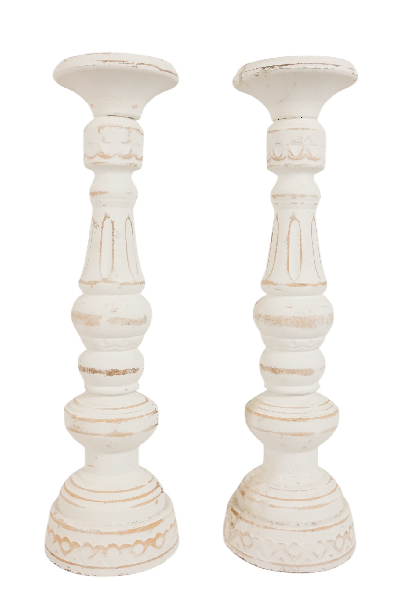 A pair of contemporary church style candlesticks - of baluster form and painted white, 44cm high. (2)