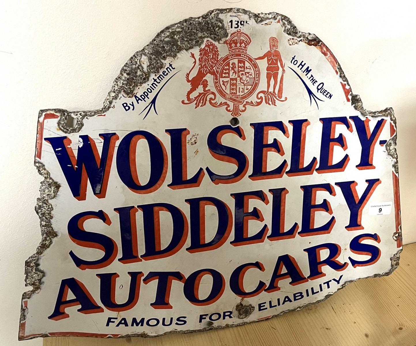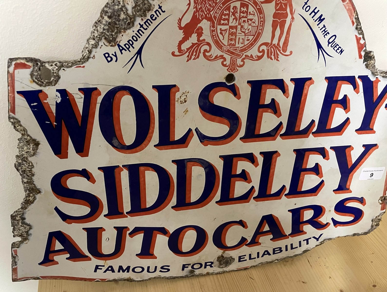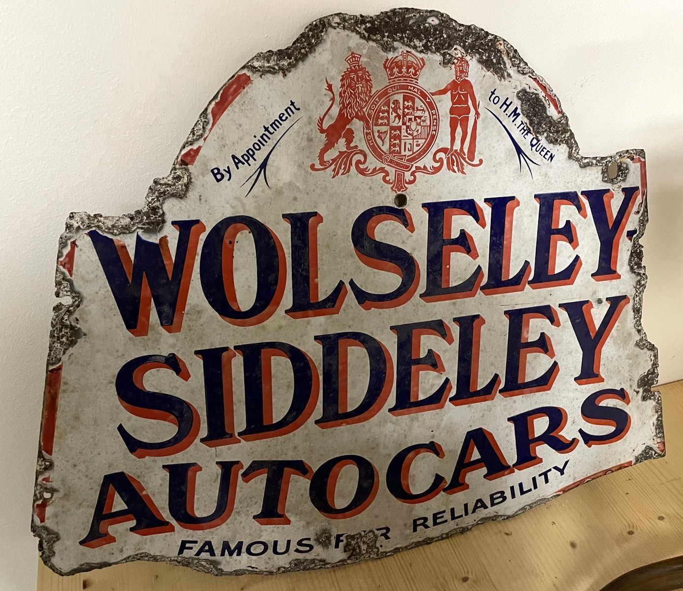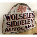 A Wolseley Siddeley Autocars Famous For Reliability double sided enamel sign, 45 x 57 cm