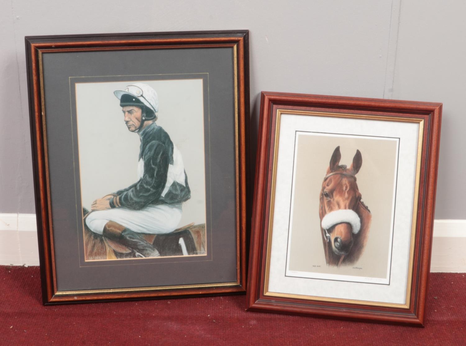Two framed prints. N.W.Brunyee' 'Red Rum' limited edition 734/850 & 'Lester'.