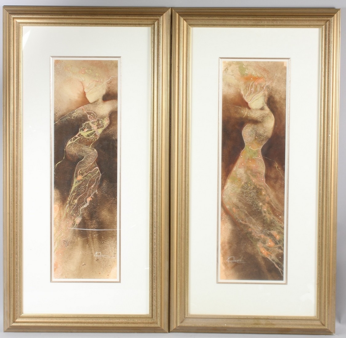 CHARLOTTE ATKINSON (b.1973) Dancing figures pair of colour prints signed in the print 64 x 18.5cm