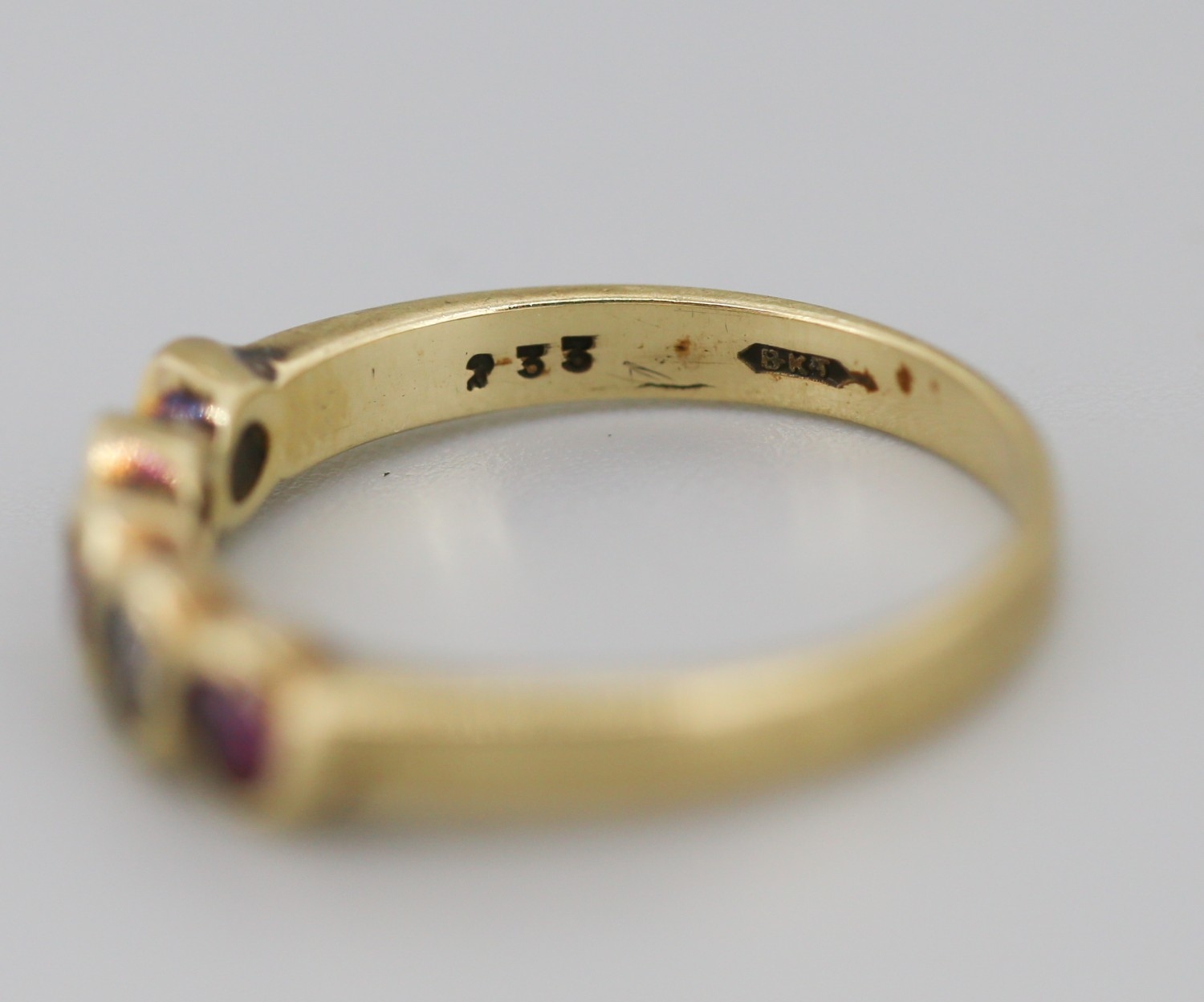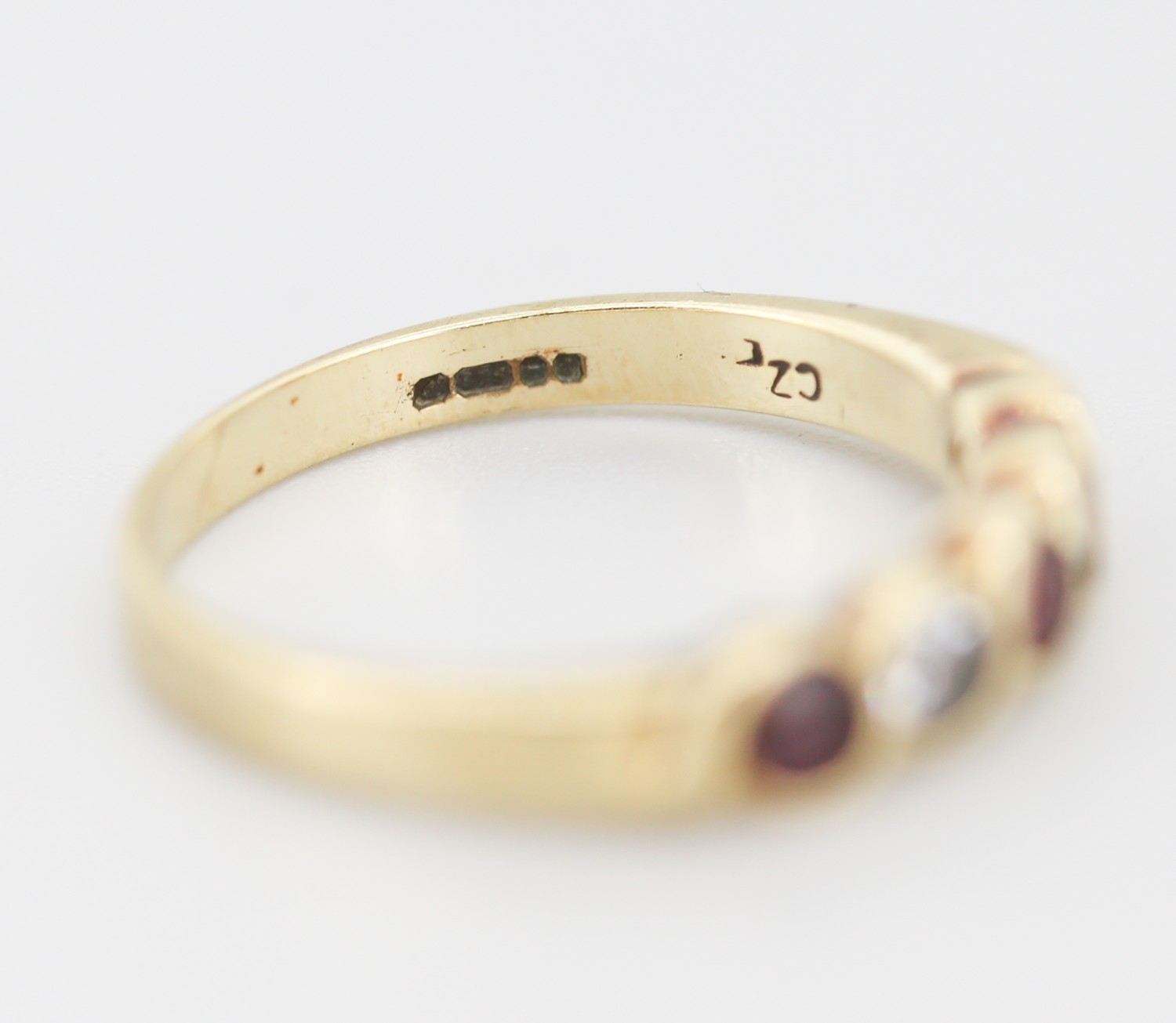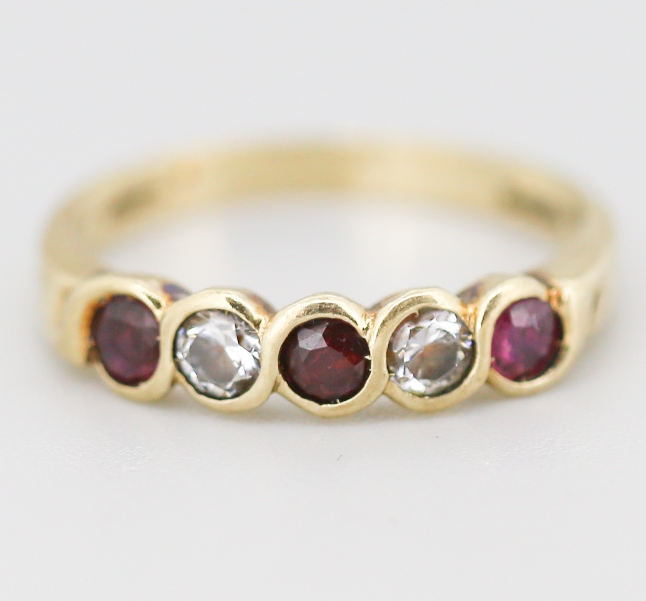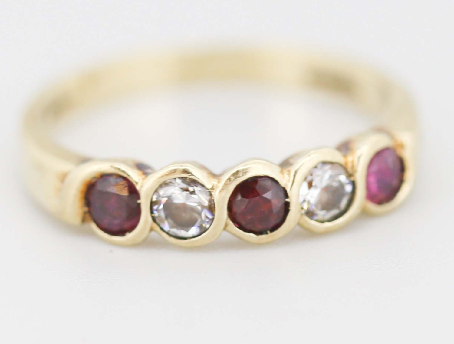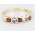 Ruby and Cubic Zirconia Set Five Stone Ring Mounted in 9 Carat Yellow Gold Ring Size N