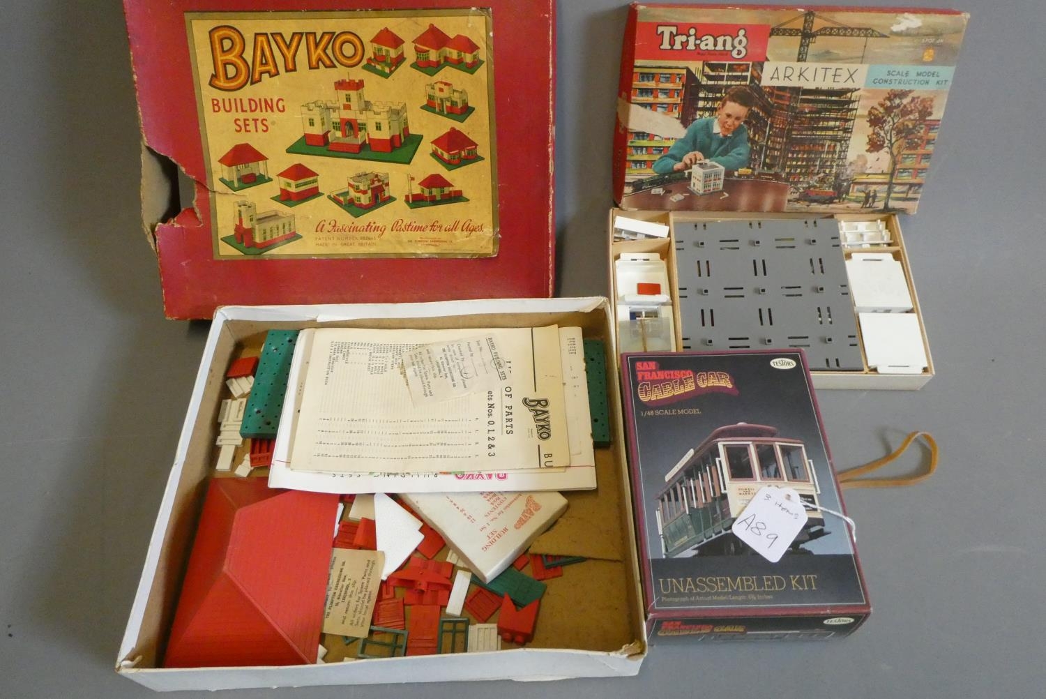 Triang Arkitex Junior Set B, Bayko Set 1 and San Francisco tram kit, poor to good