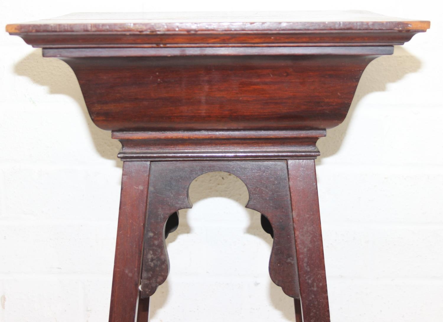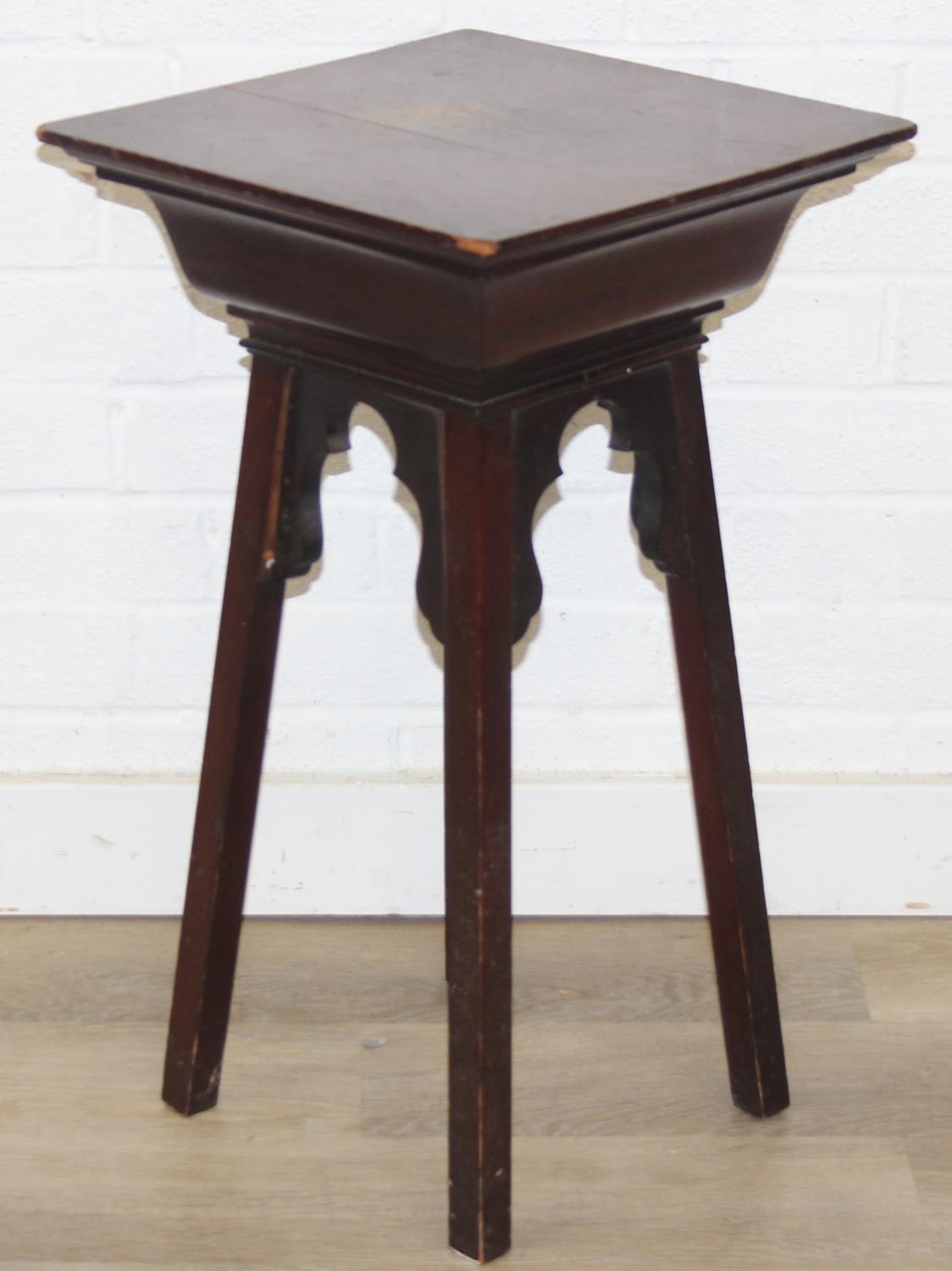 Unusual mahogany side table or plant stand dating from the turn of the 20th century, Liberty of London style, 35cm x 35cm x 61cm