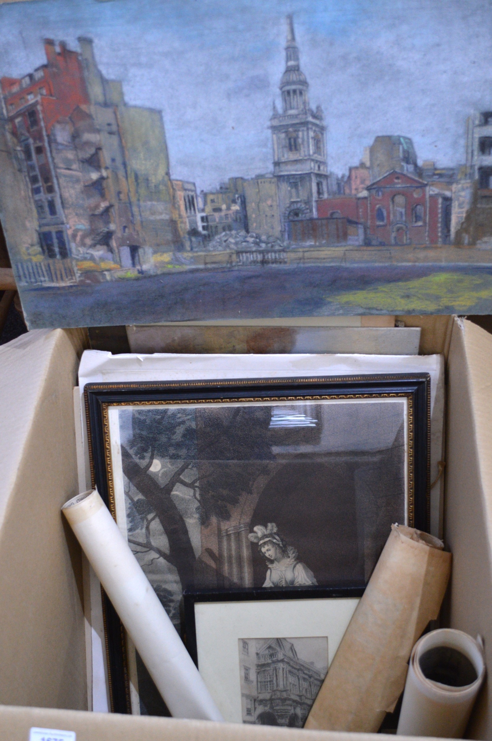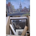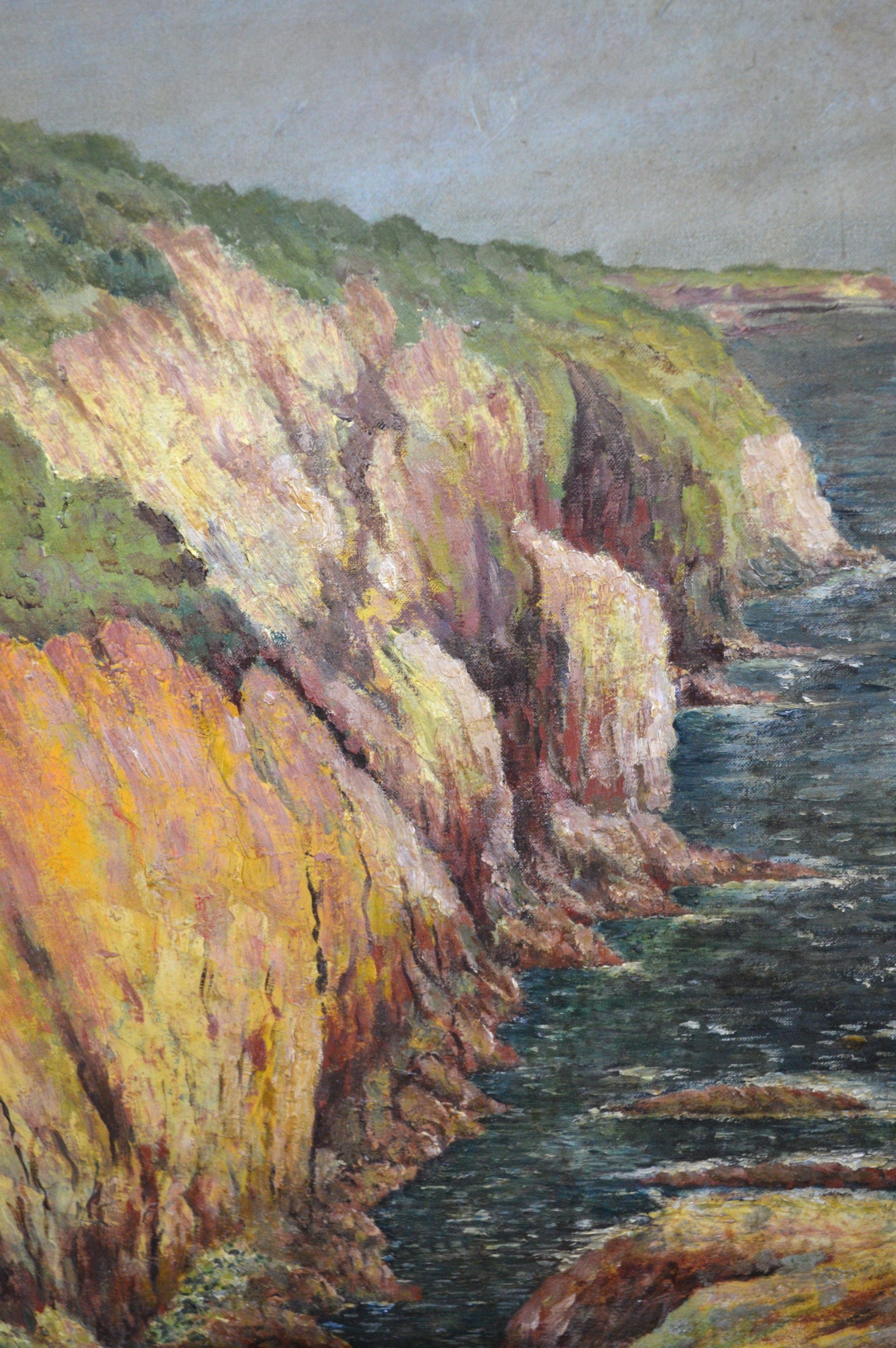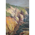 Modern British School oil on canvas coastal scene with cliffs, unsigned, 50 x 36cm unframed, together with a quantity of other miscellaneous oil paintings, watercolours and prints