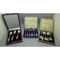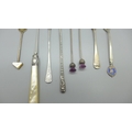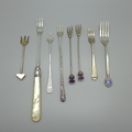 Seven silver olive forks and one other silver commemorative fork, total weight 86g