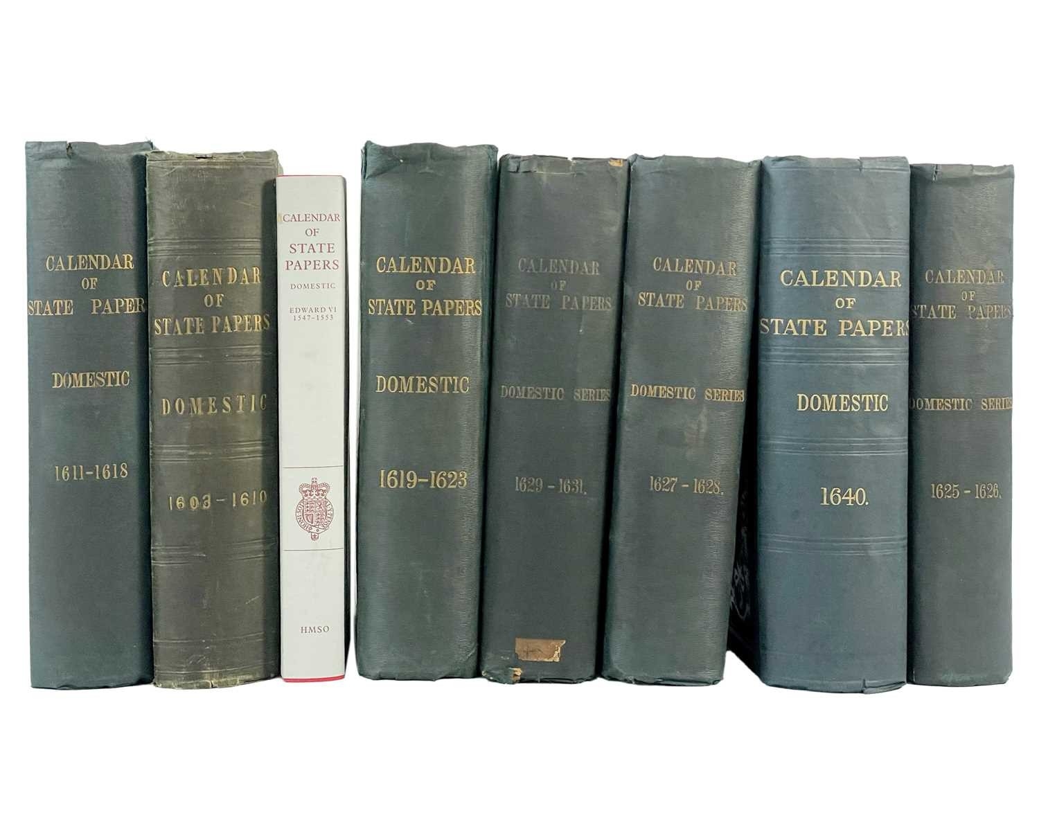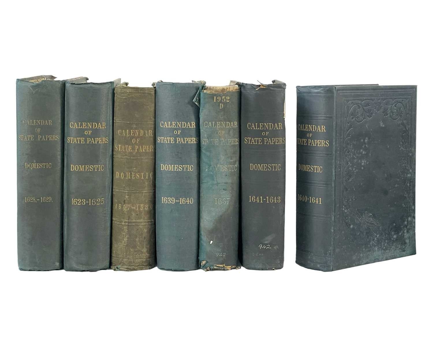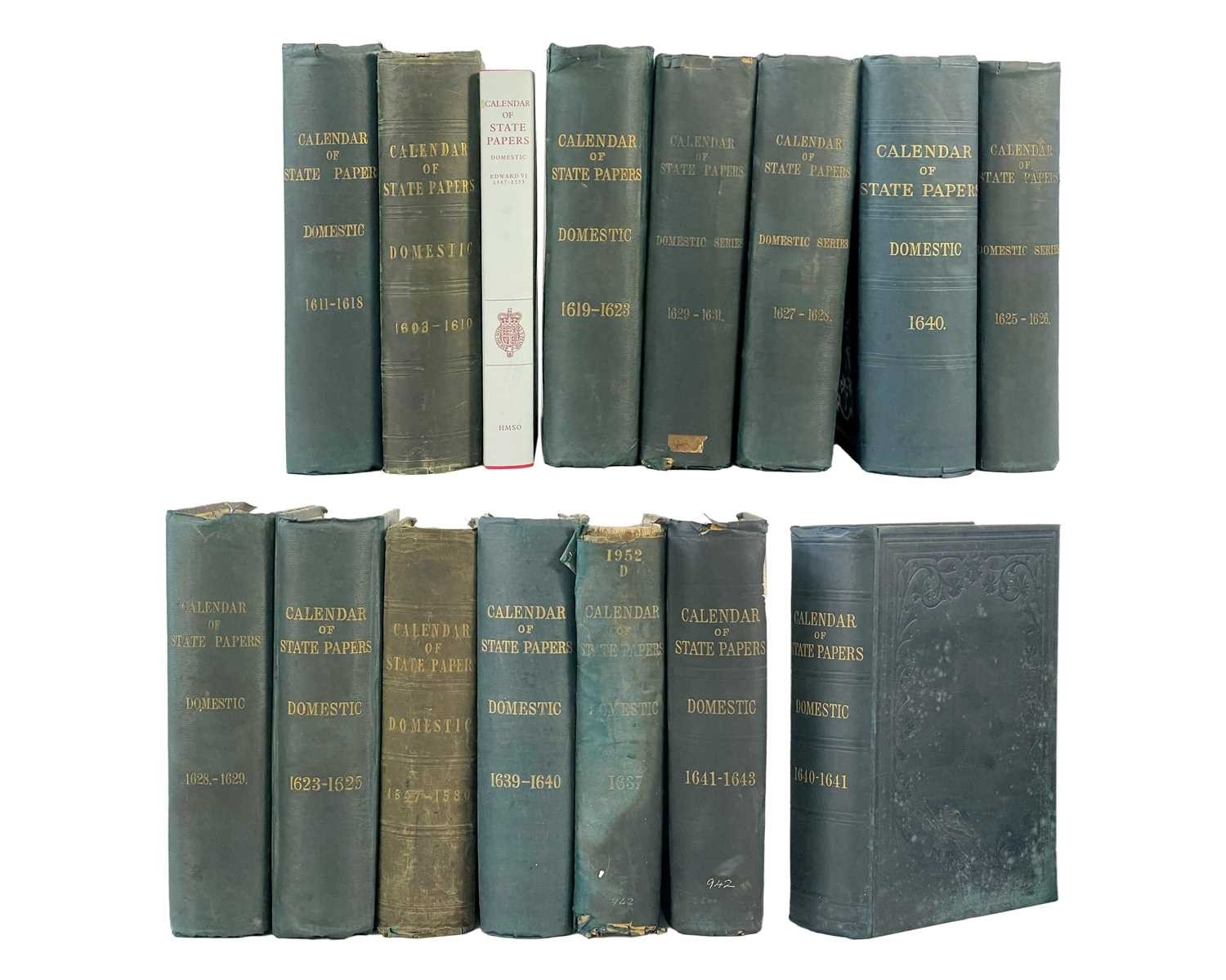 Calendar of State Papers Domestic Fourteen volumes, all in original publisher's embossed cloth, slightly grubby, some perished gutta-percha, internally good, Longman Brown, Green, Longman's & Roberts, London 1856-1857; plus one other work. (15) Years of volumes: 1547-80, 1603-10,1611-18, 1619-23,1623-25, 1623-26, 1627-28, 1628-29, 1629-31, 1637, 1639-40, 1640, 1640-41, 1641-43.