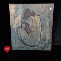An abstract watercolour on paper painting. Features rhythmic forms and shapes. In a minimal colour palette with blacks, soft beiges. Housed in a black wooden frame behind glass.