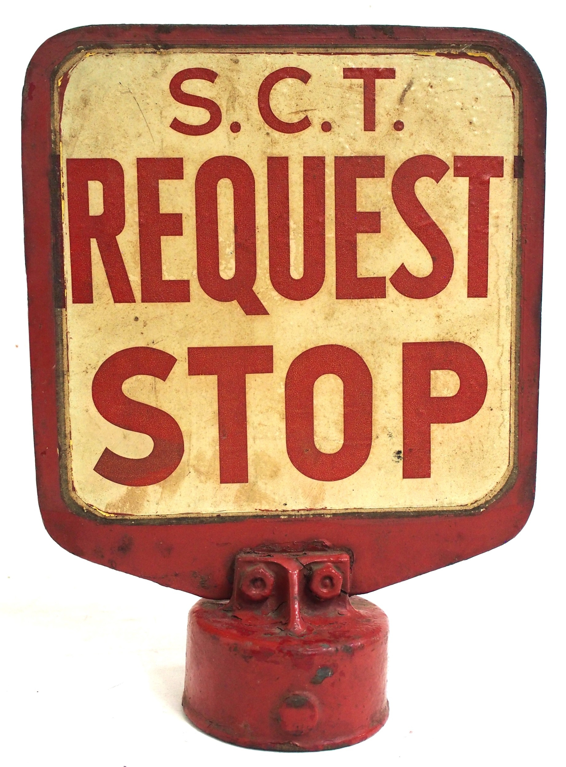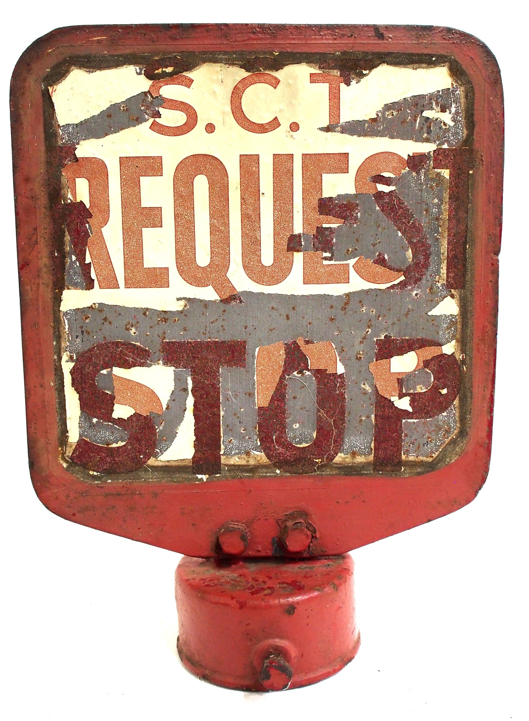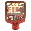 Southampton CT steel Request Stop (Bus) pole top sign, double sided (one side worn) 12" tall. (A2) (Dispatch by Mailboxes/Collect from Banbury Depot)
