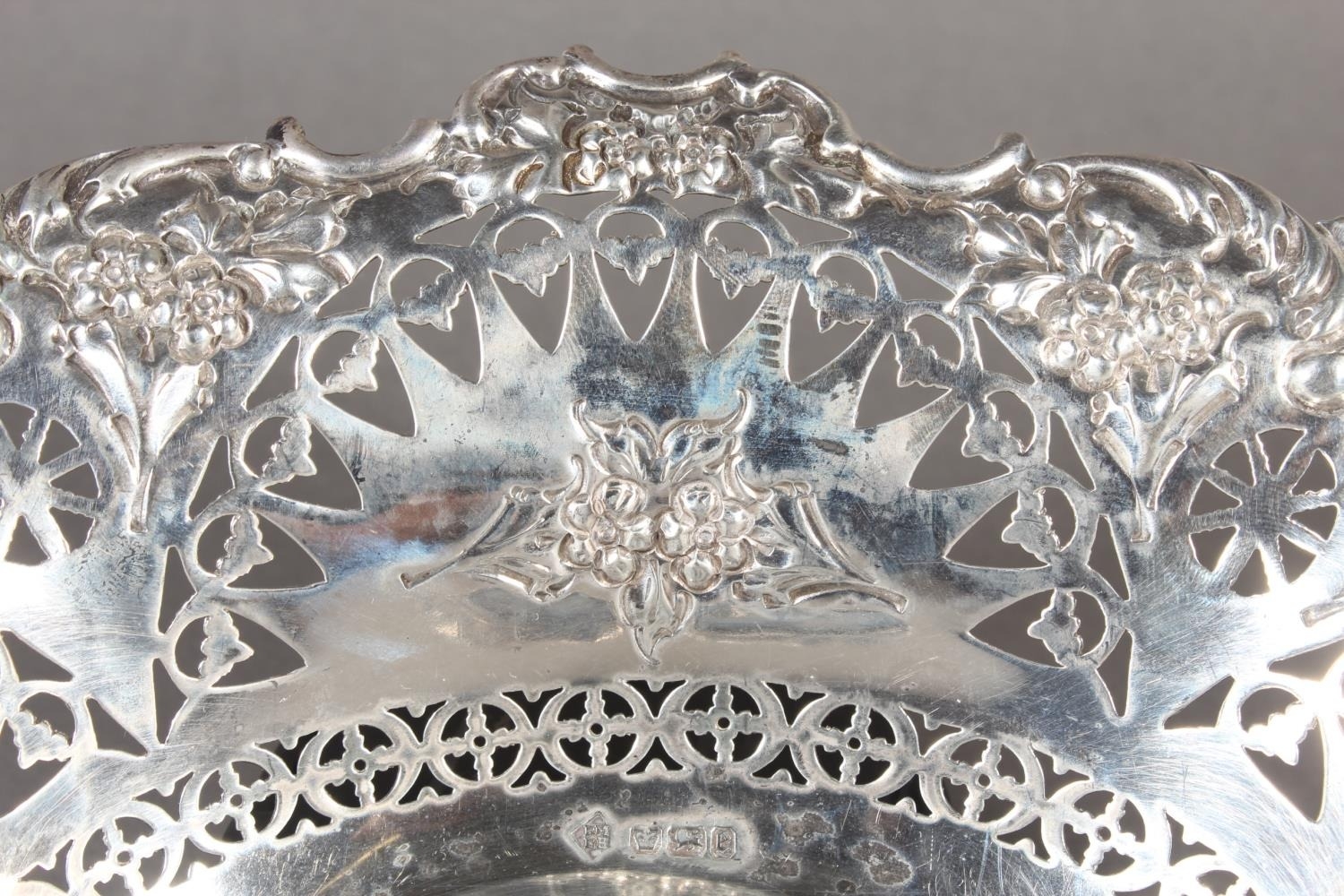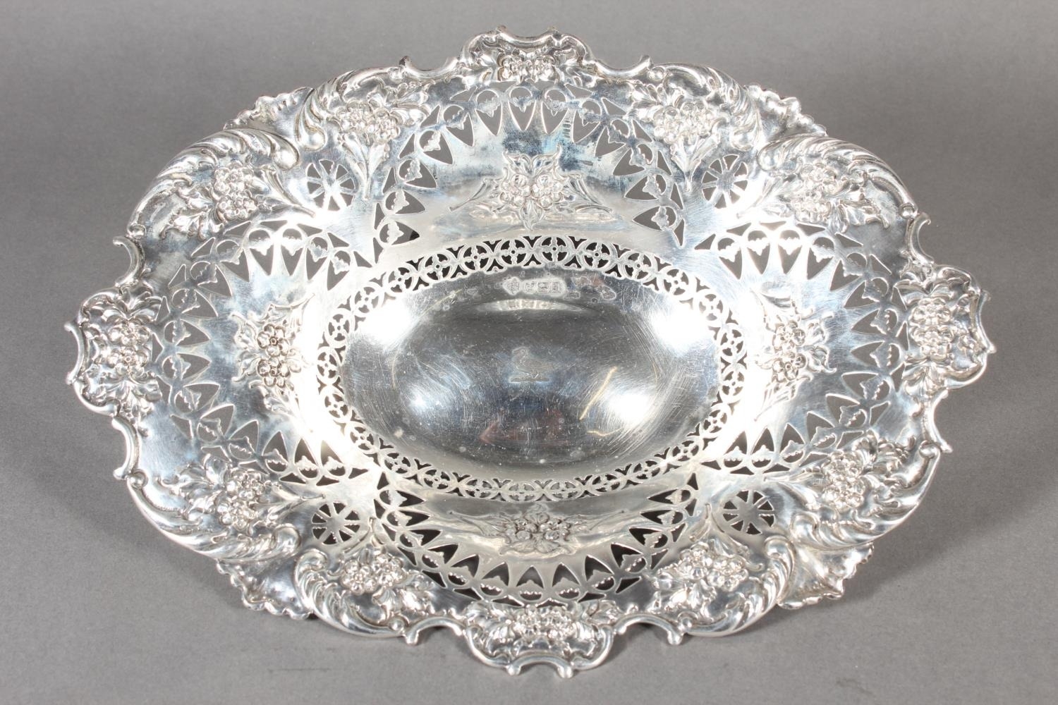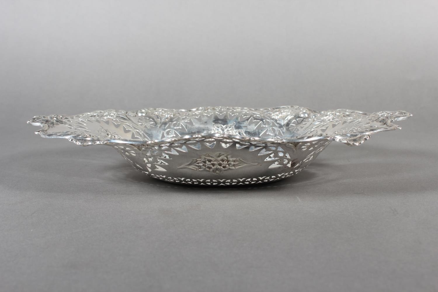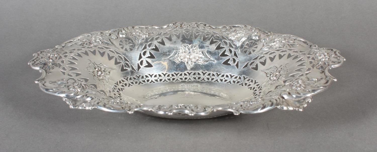 Victorian silver heavily foliate decorated pierced bon bon dish or basket, Martin, Hall & Co (Richard Martin & Ebenezer Hall), Sheffield, 1897, 241g.
