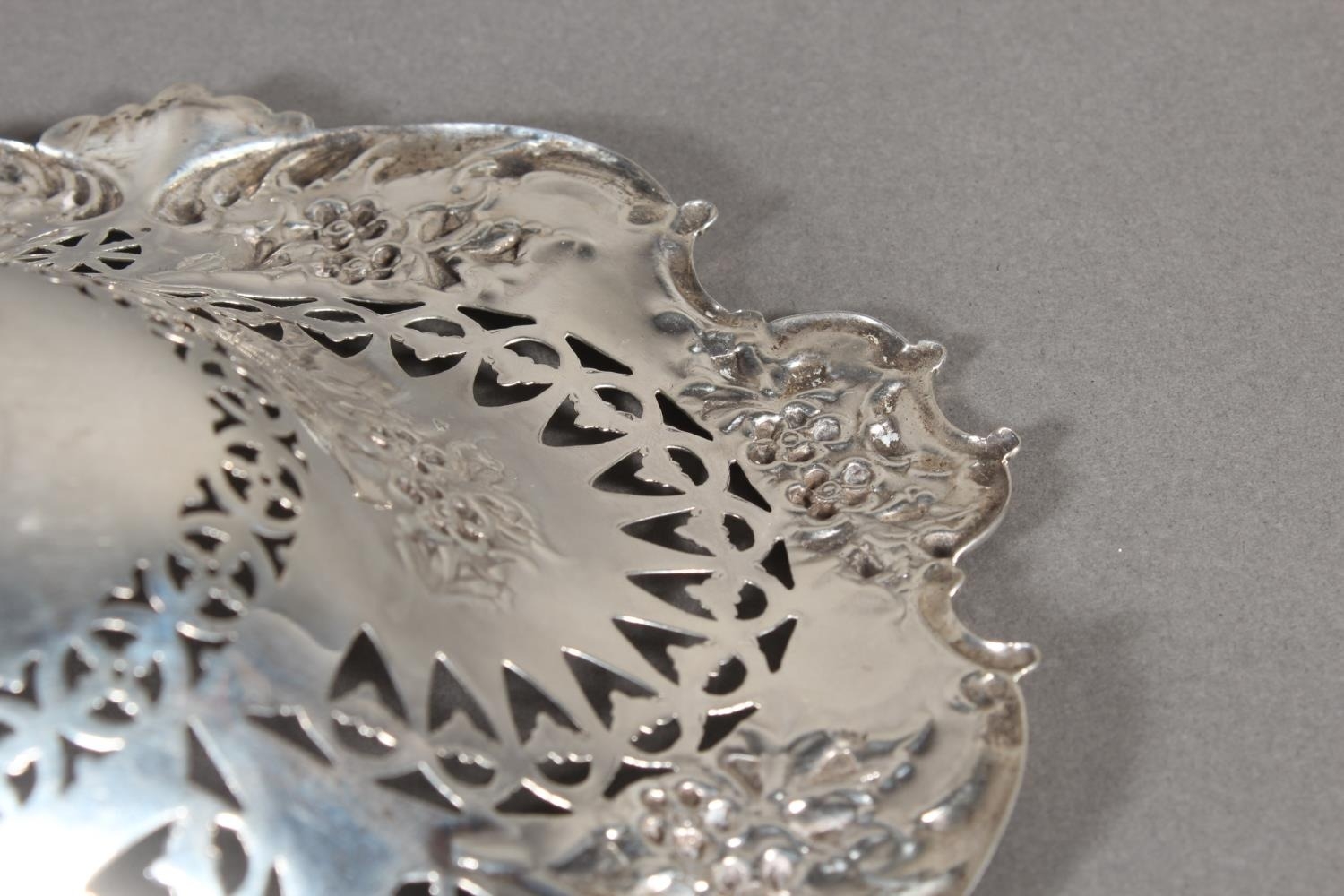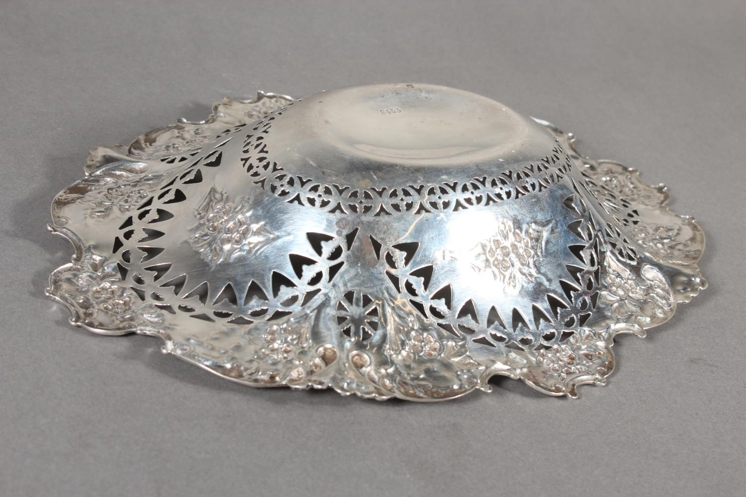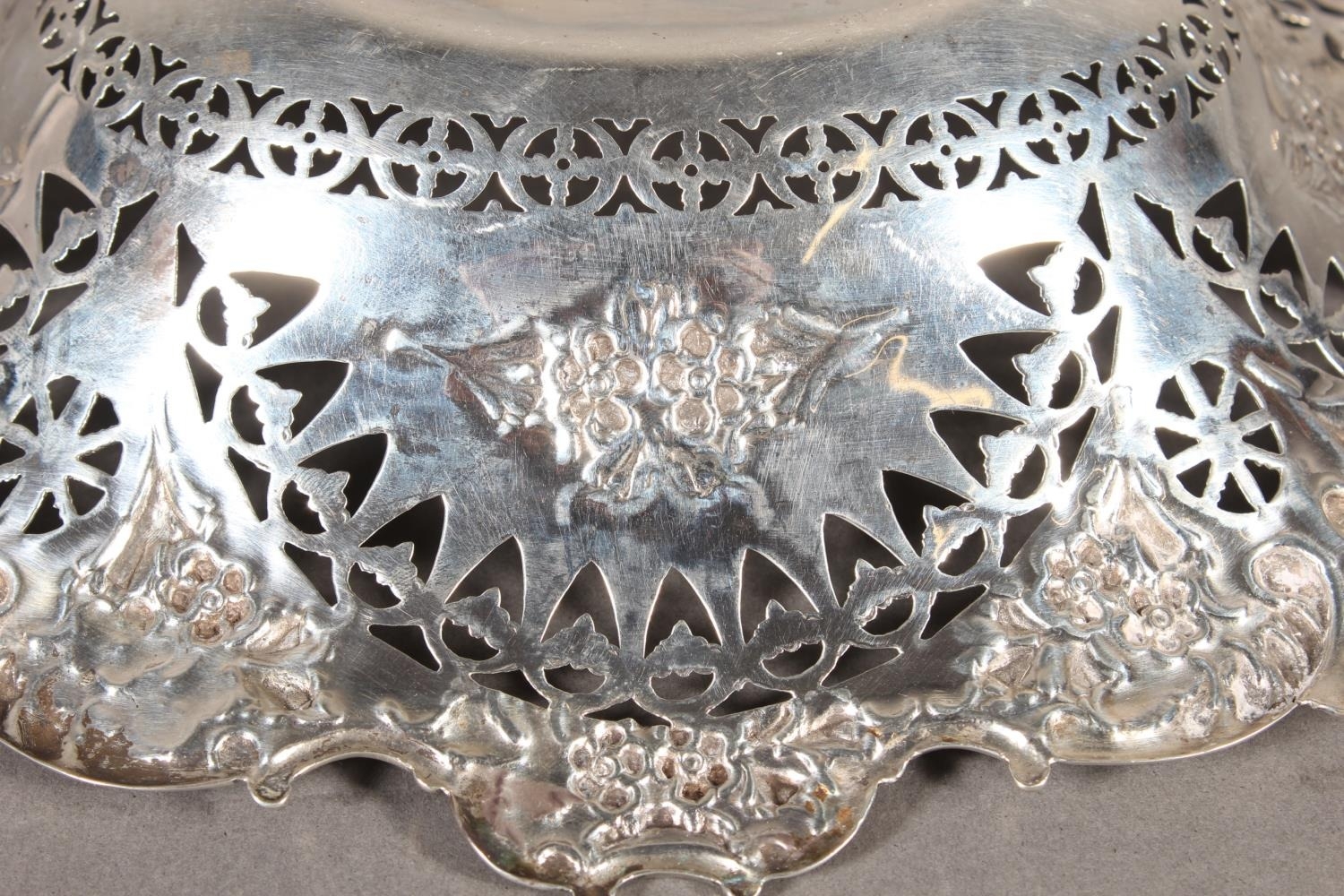 Victorian silver heavily foliate decorated pierced bon bon dish or basket, Martin, Hall & Co (Richard Martin & Ebenezer Hall), Sheffield, 1897, 241g.
