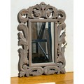 An ornate wooden framed mirror. 40x60cm.