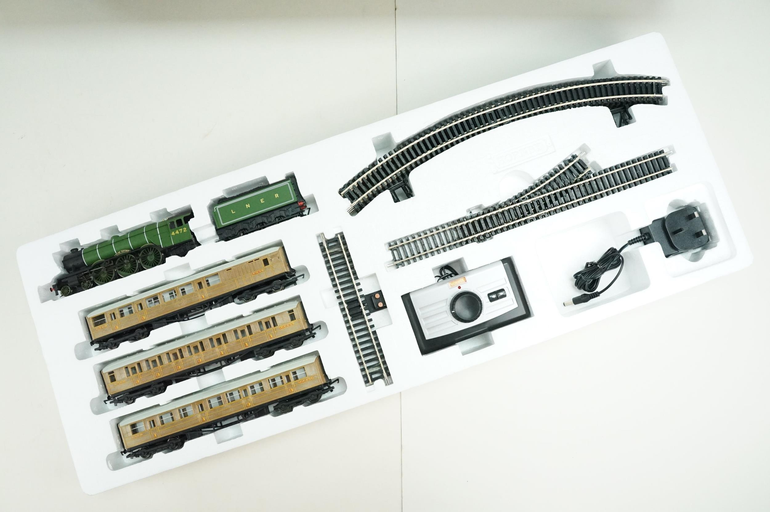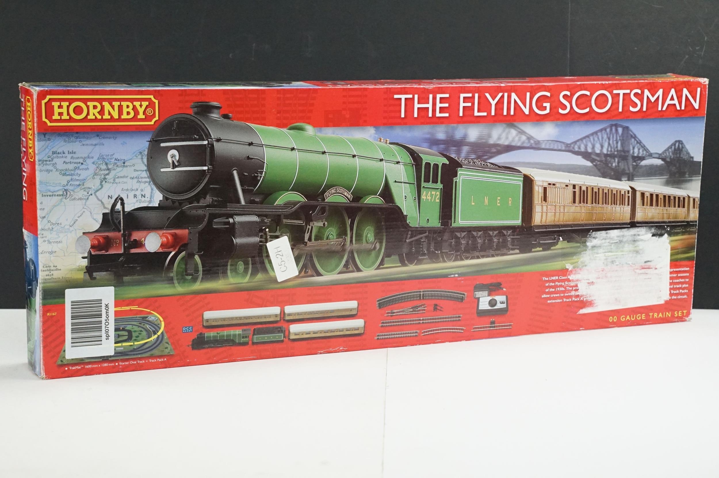 Boxed Hornby OO gauge R1167 The Flying Scotsman train set, complete, sticker removal to box