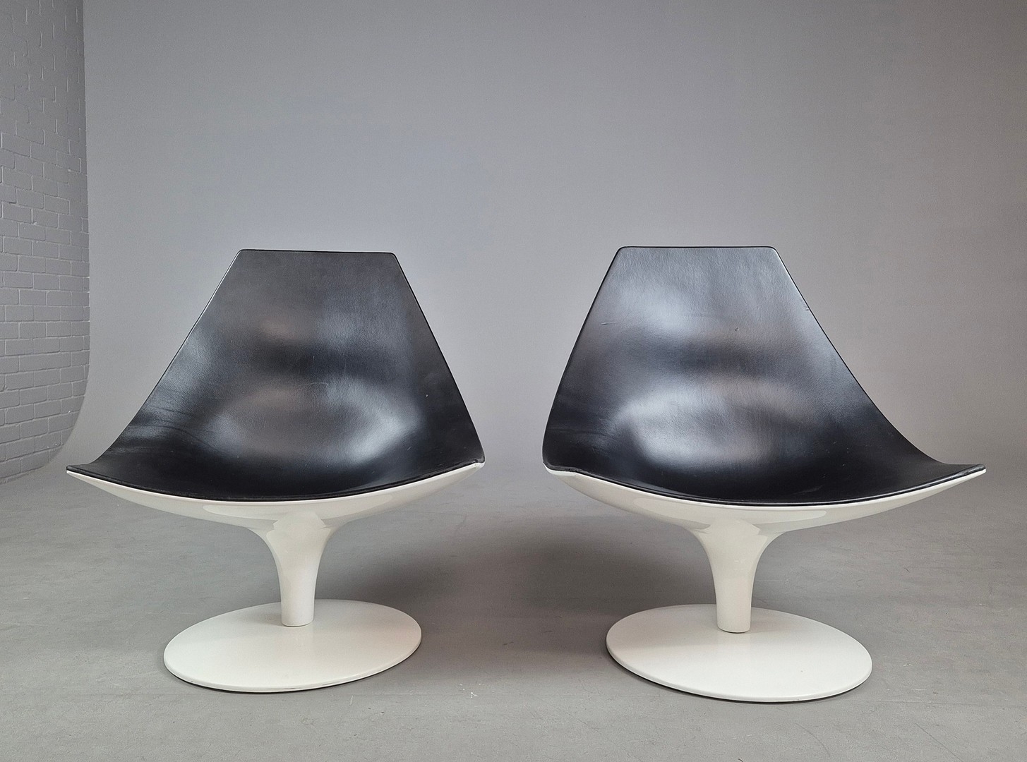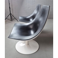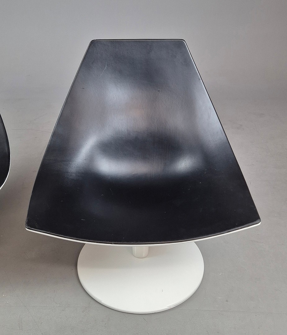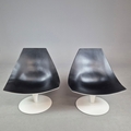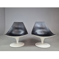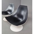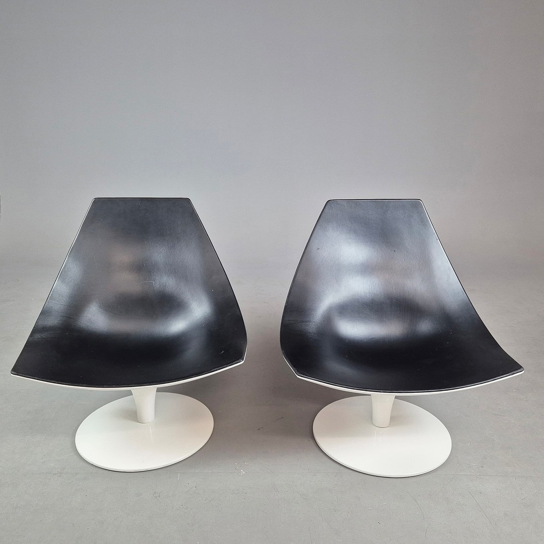 PAIR OF SWIVEL MOON CHAIRS BY PIETRO AROSIO FOR TACCHINI CIRCA 2000. With black leather upholstery 90cm H x 82cm W x 76cm D.