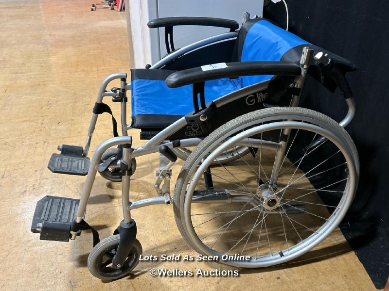Excel G Lite Pro wheel chair / Buyer will be responsible for removal, located in the large hall / Lot Location: The Tropicana, Marine Parade, Weston-Super-Mare, North Somerset, BS23 1BE