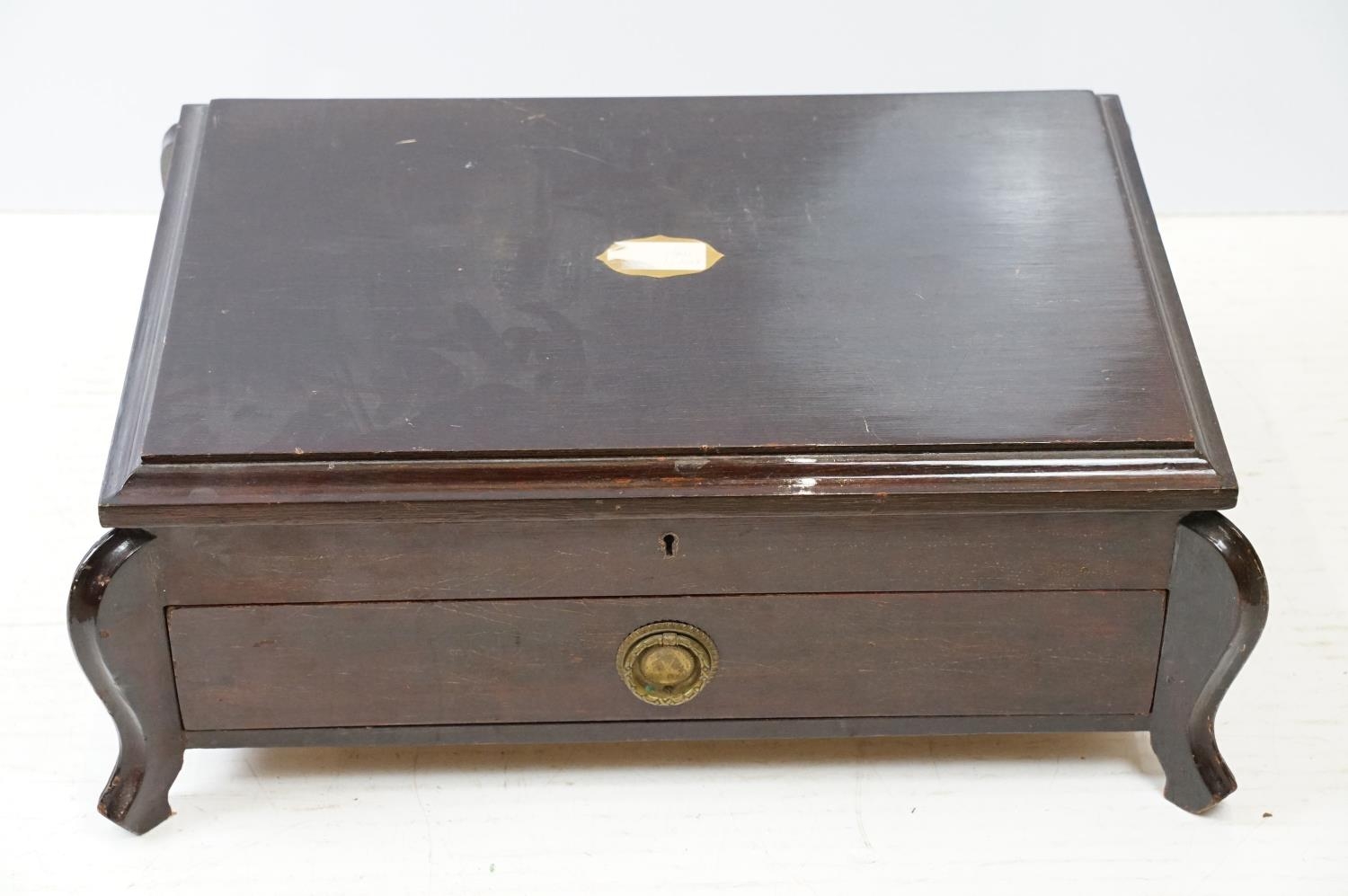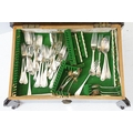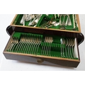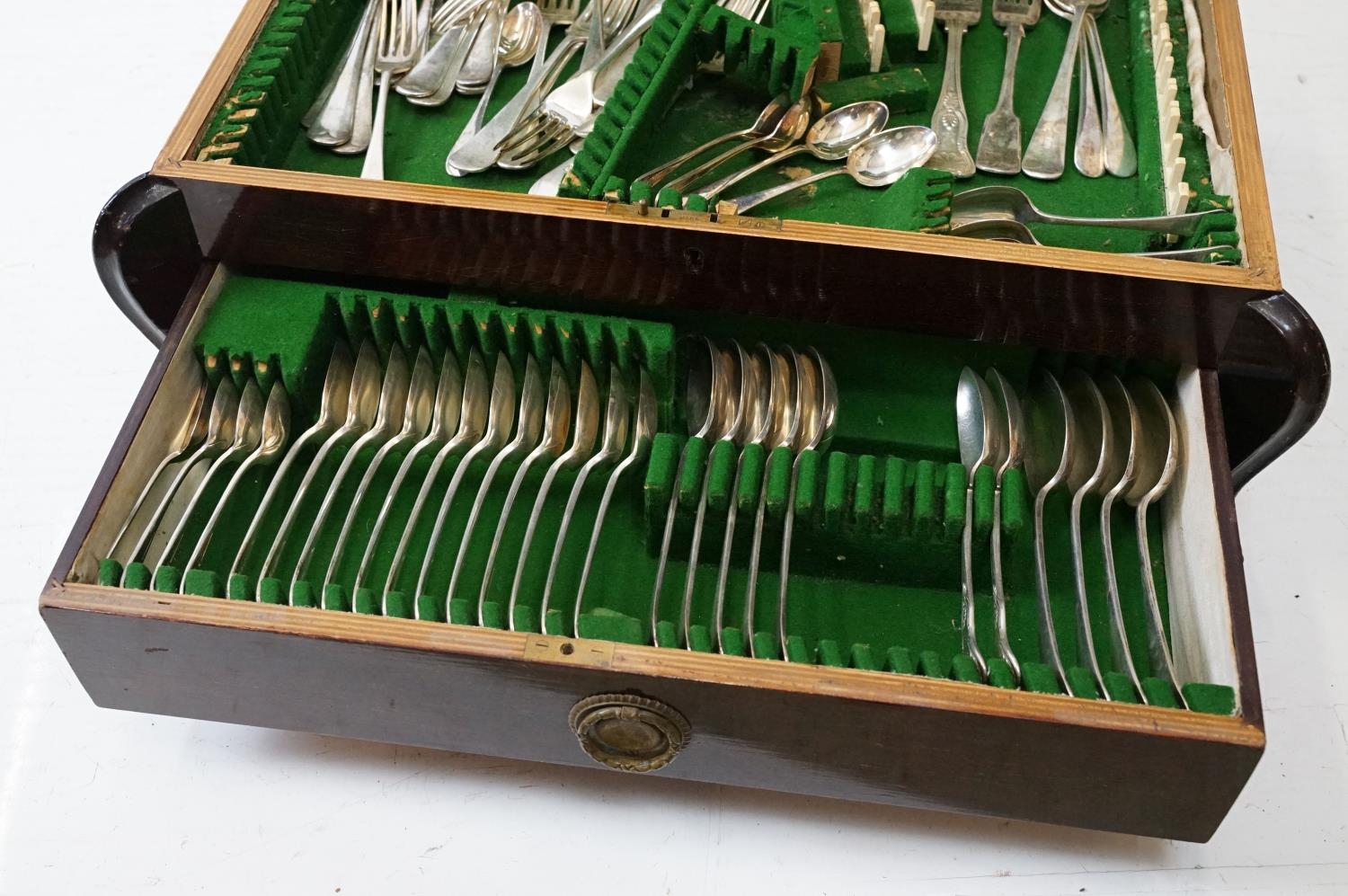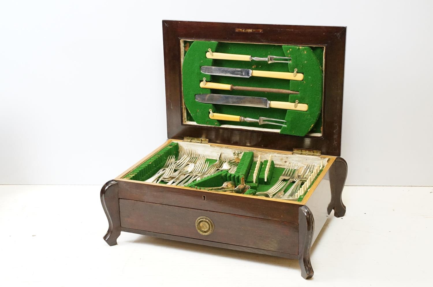 Mahogany cased canteen of cutlery, containing a mixture of silver plated flatware, to include King's pattern, with drawer below, 21cm high x 55cm wide x 40cm deep