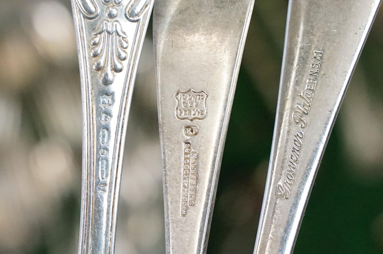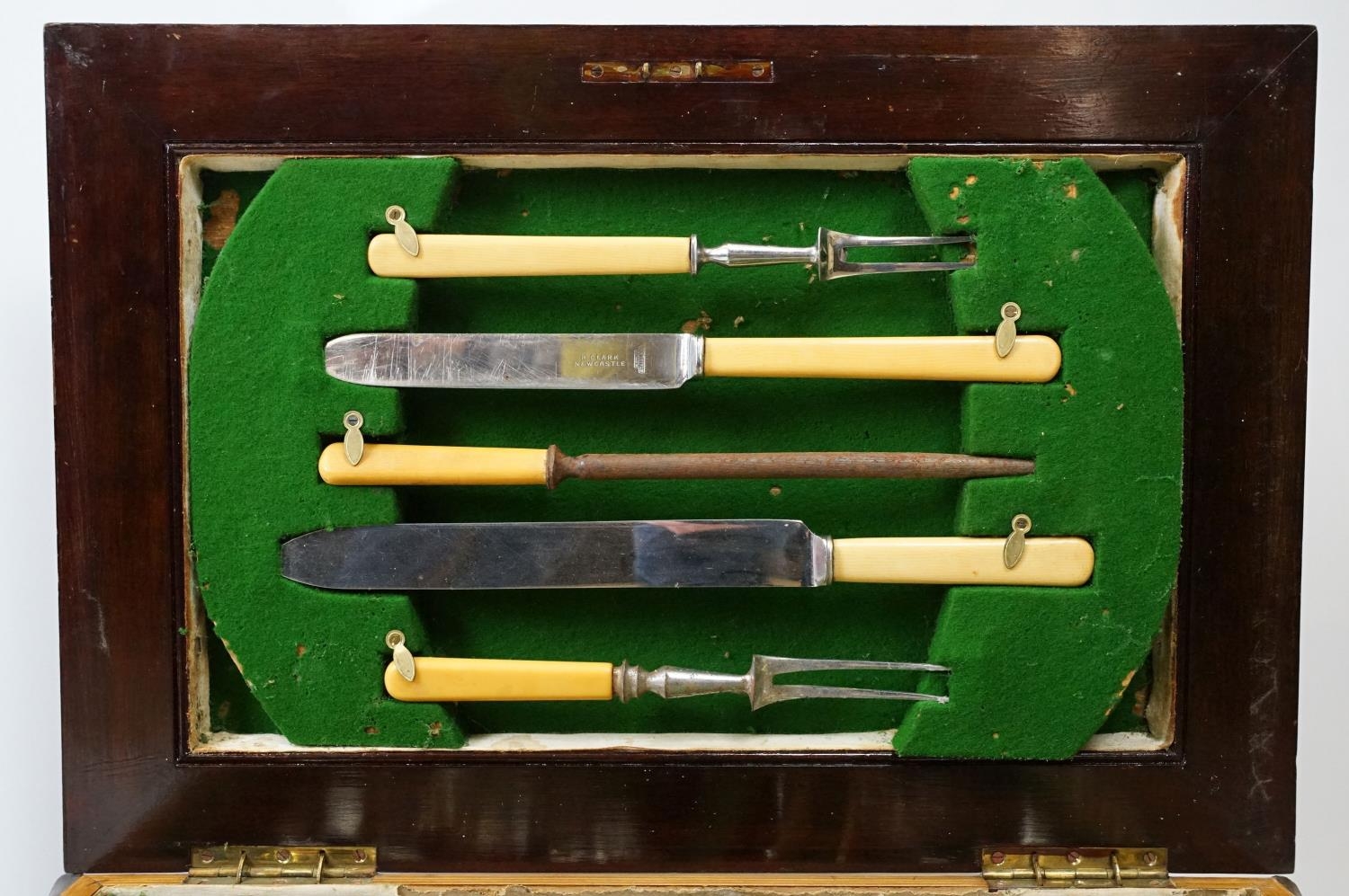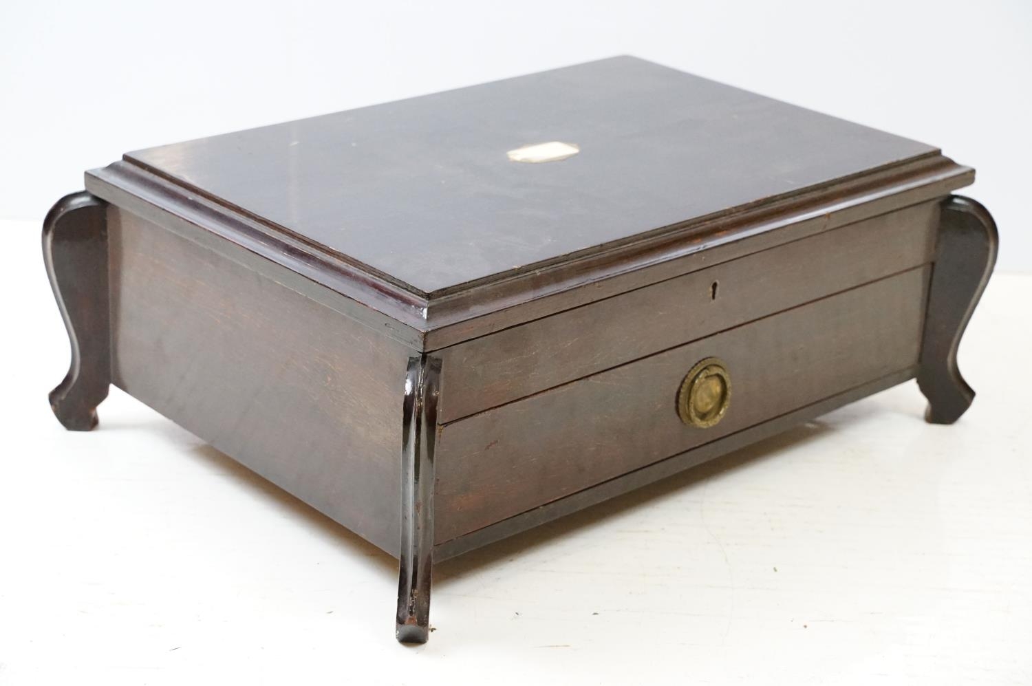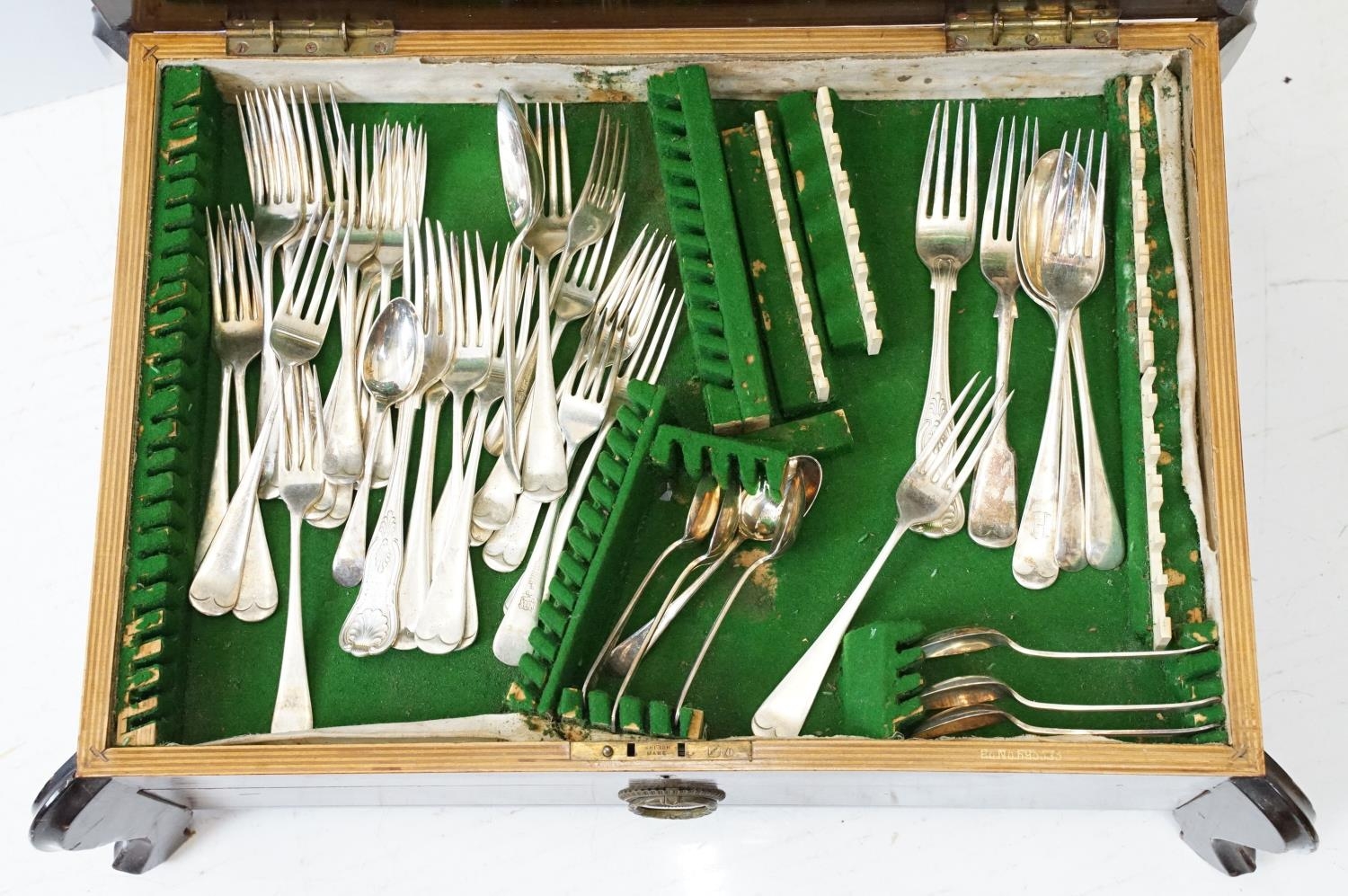 Mahogany cased canteen of cutlery, containing a mixture of silver plated flatware, to include King's pattern, with drawer below, 21cm high x 55cm wide x 40cm deep