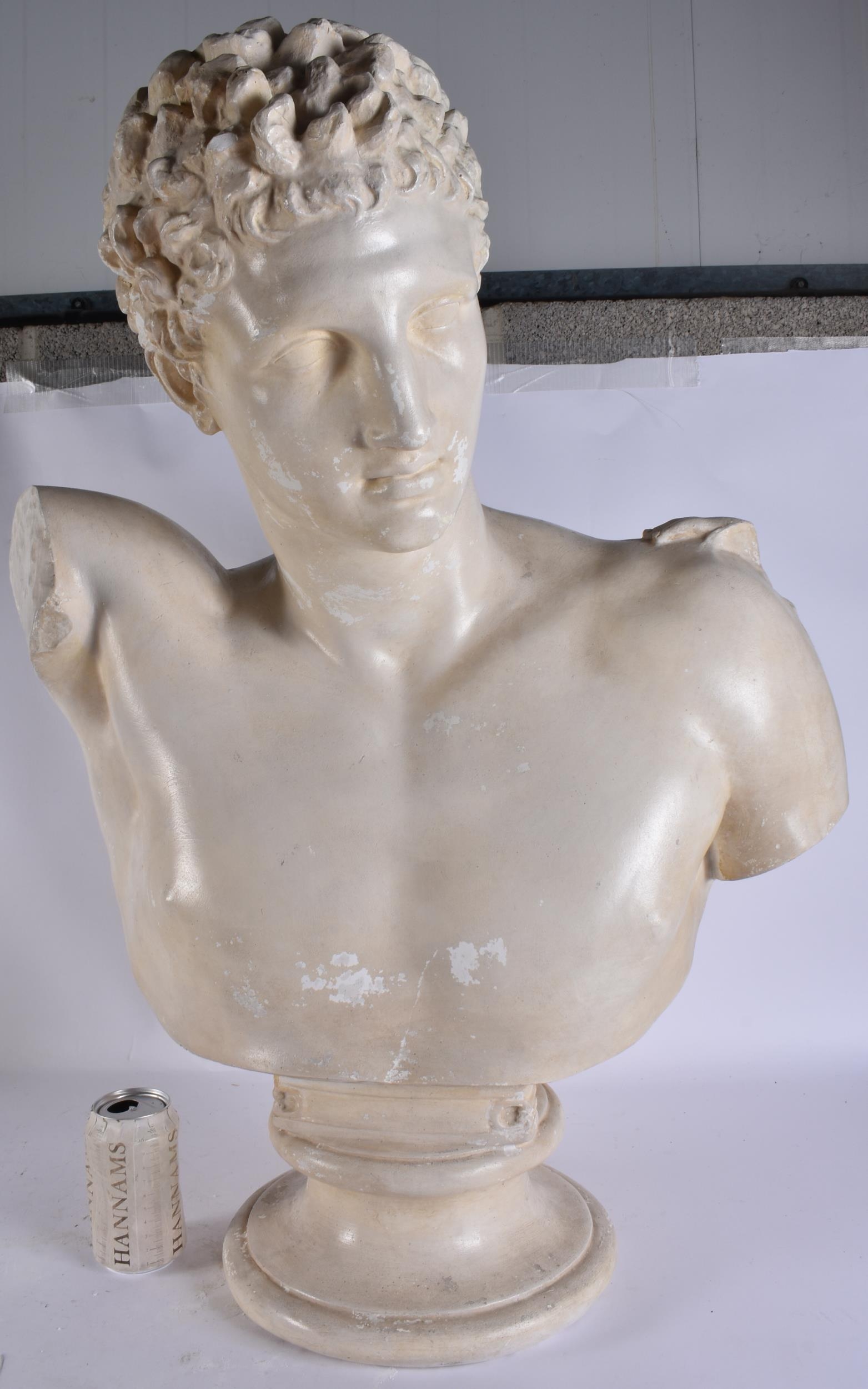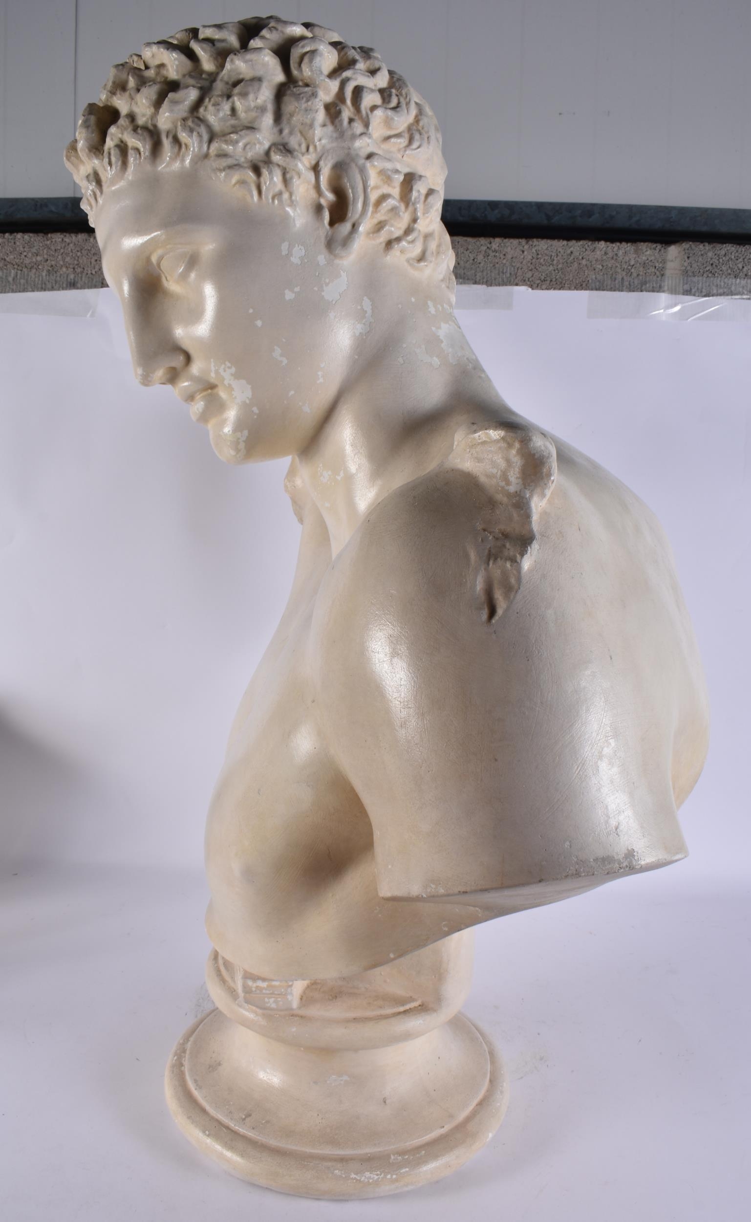 A LARGE PLASTER BUST OF A MALE. 84 cm x 54 cm.